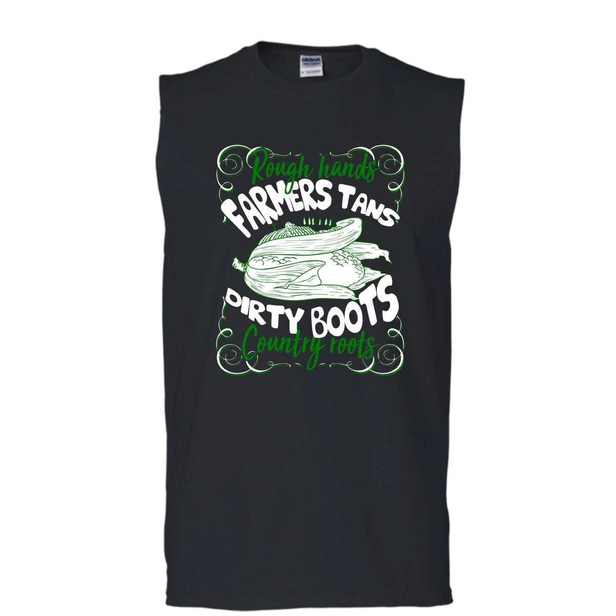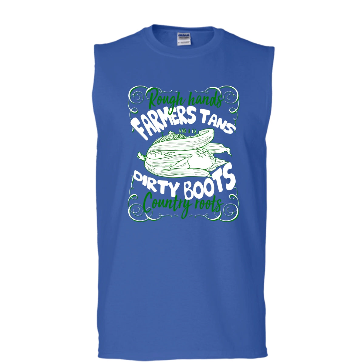 Rough Hands Farmers Tans T Shirt, Dirty Boots Country Roots T Shirt, Cool T Shirt (Men's Cotton Sleeveless)