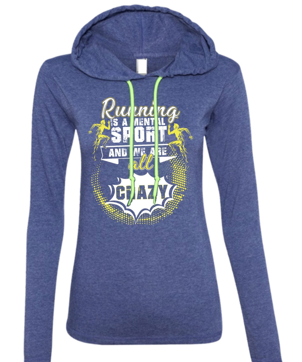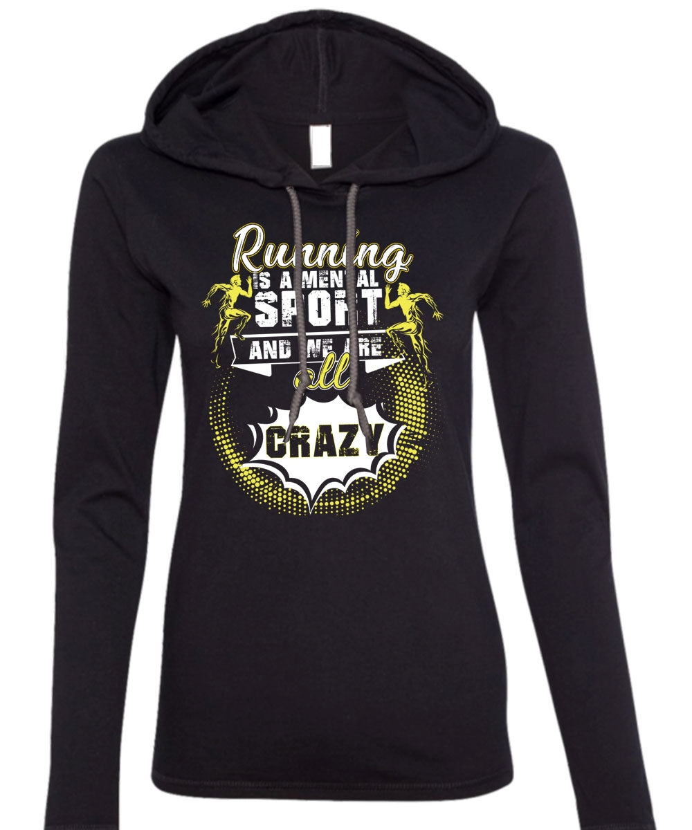 Running Is A Mental Sport T Shirt, I Love Running T Shirt (Anvil Ladies Ringspun Hooded)