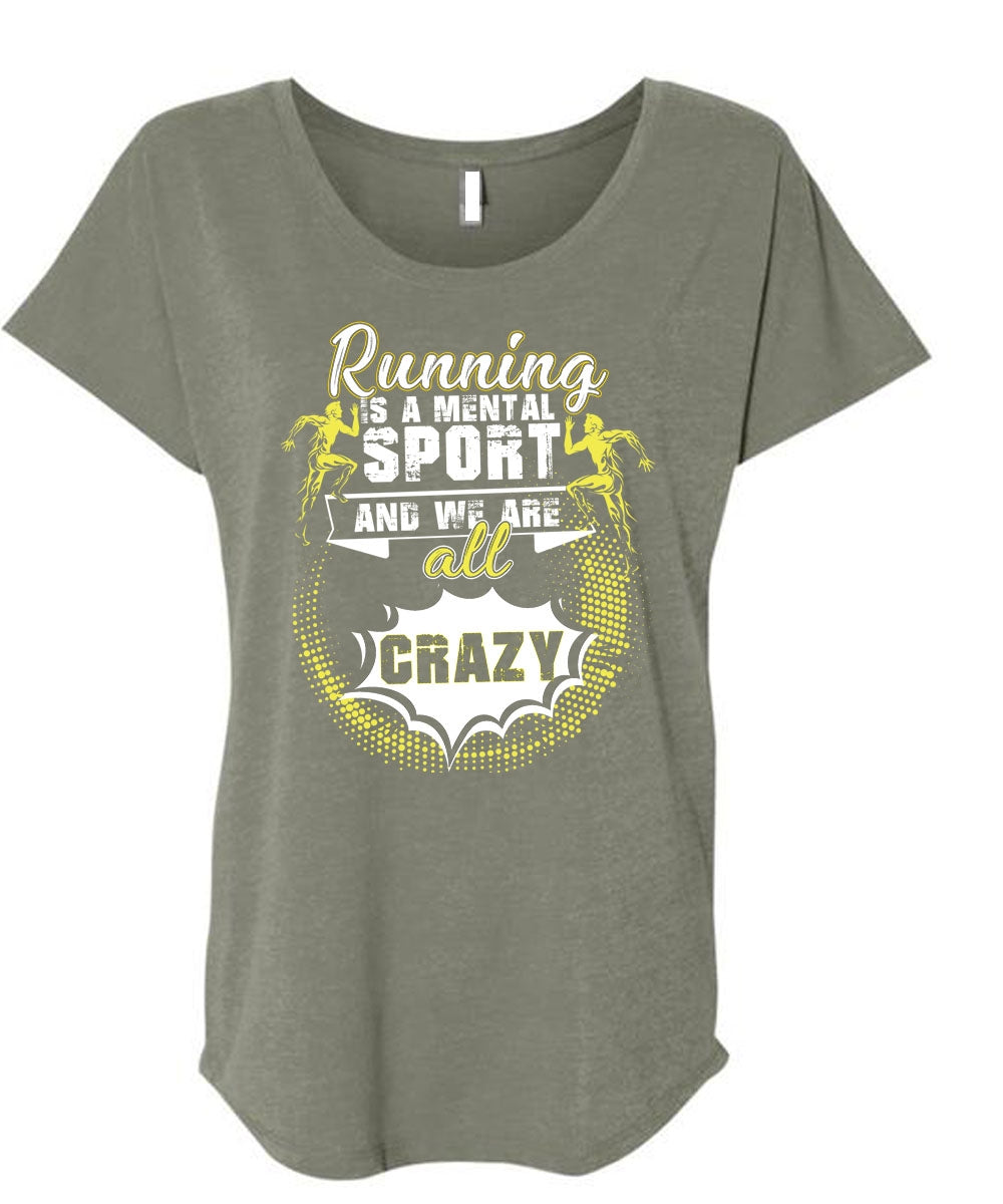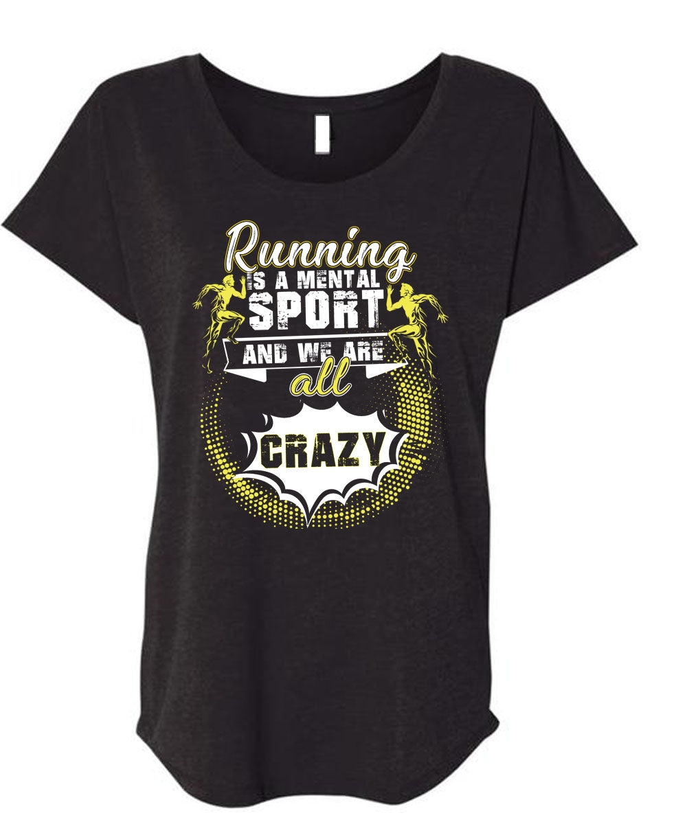 Running Is A Mental Sport T Shirt, I Love Running T Shirt, Cool Shirt (Ladies' Triblend Dolman Sleeve)