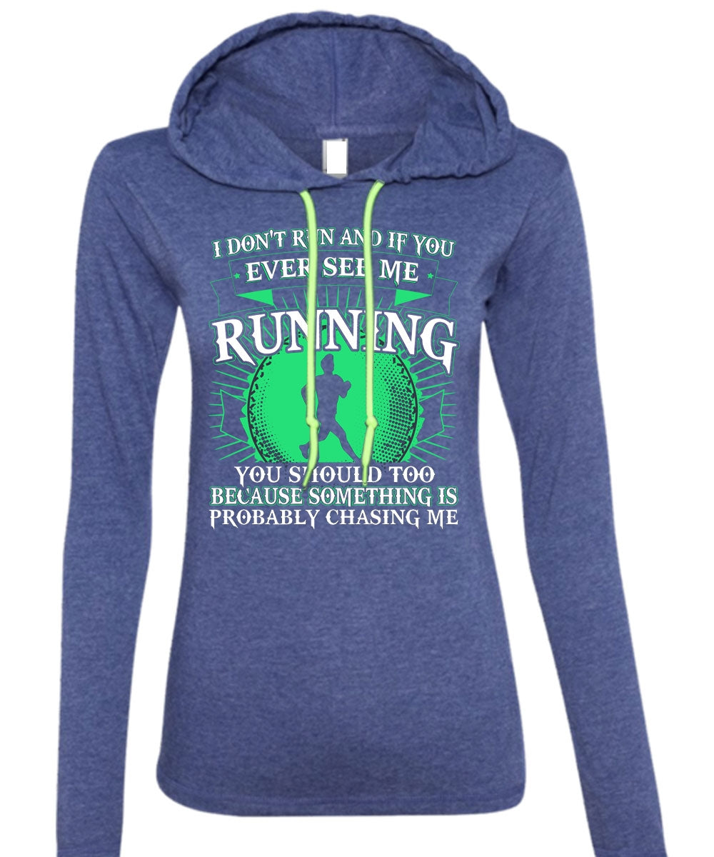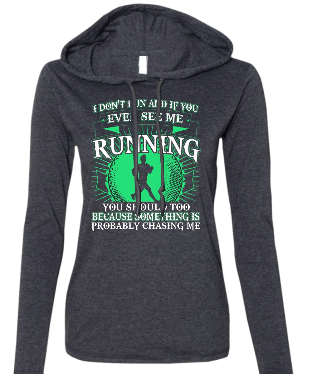 See Me Running T Shirt, I Don't Run T Shirt (Anvil Ladies Ringspun Hooded)