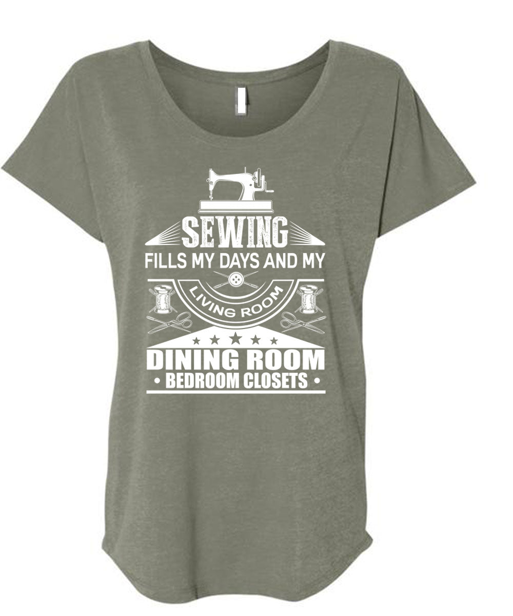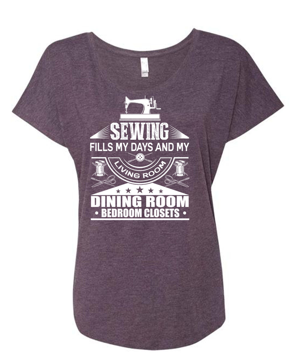 Sewing Fills My Days T Shirt, Dining Room T Shirt, Cool Shirt (Ladies' Triblend Dolman Sleeve)