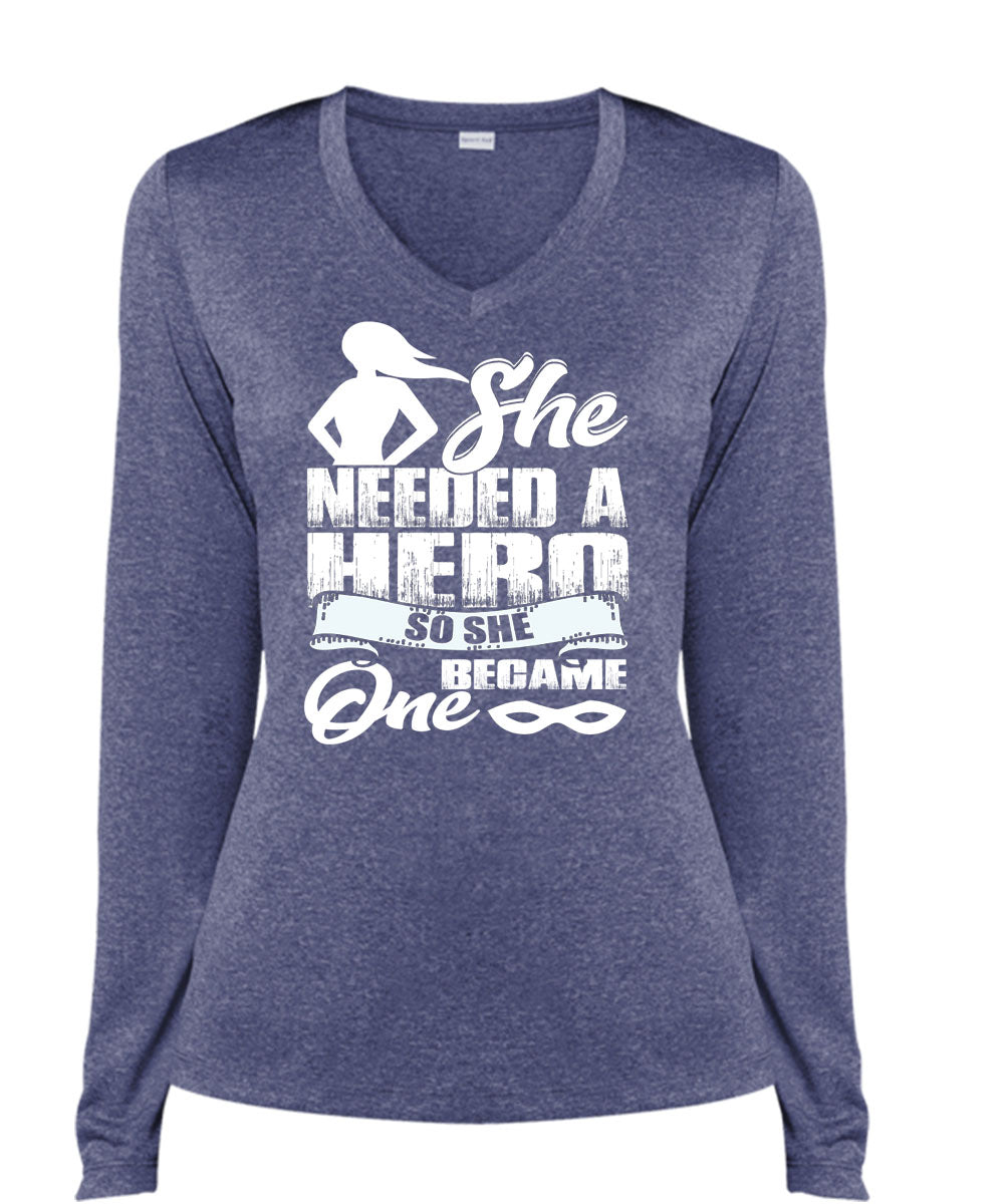 She Became One T Shirt, Being A Lady T Shirt, Cool Shirt (Ladies LS Heather V-Neck)