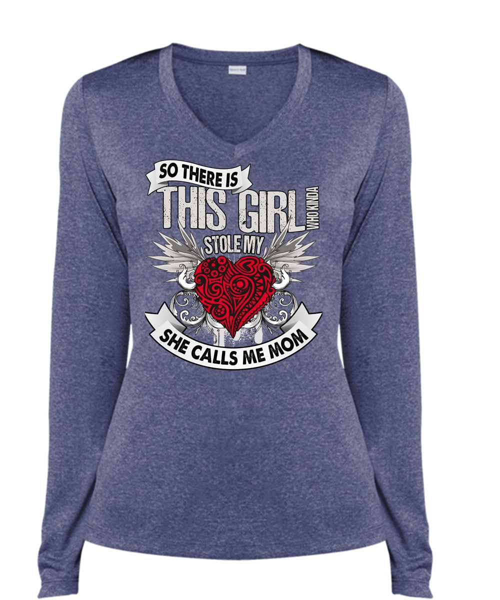 She Calls Me Mom T Shirt, This Girl Stole My Heart T Shirt, Cool Shirt (Ladies LS Heather V-Neck)