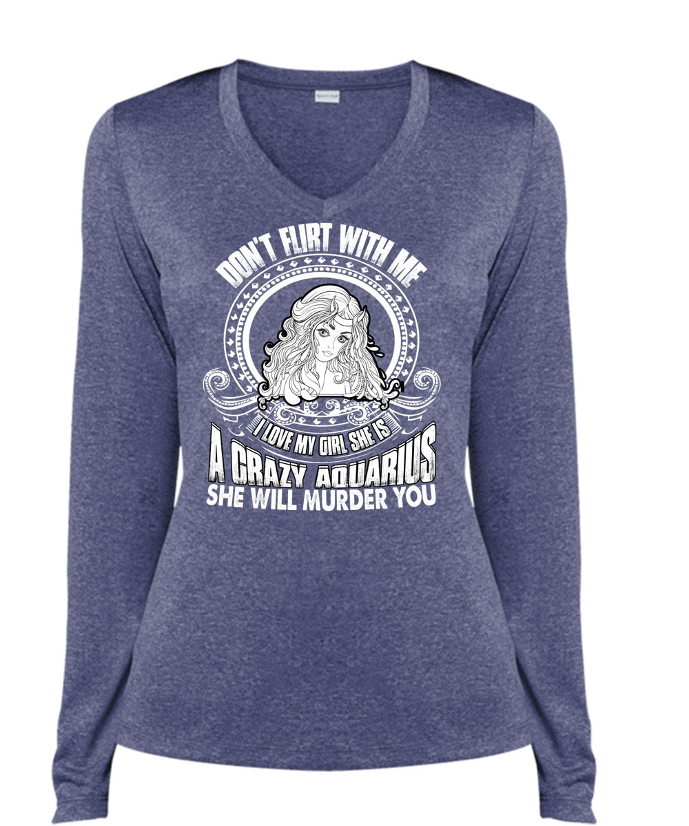 She Is A Crazy Aquarius T Shirt, I Love My Girl T Shirt, Cool Shirt (Ladies LS Heather V-Neck)