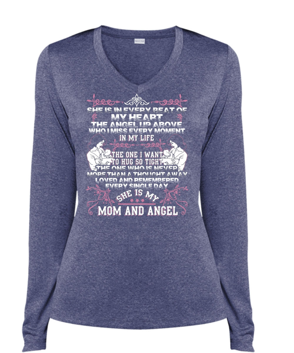 She Is My Mom And Angel T Shirt, I Love Mom T Shirt, Cool Shirt (Ladies LS Heather V-Neck)