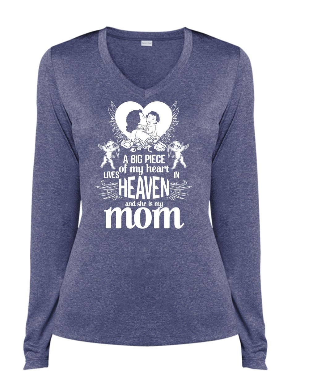 She Is My Mom T Shirt, Lives Heaven T Shirt, Cool Shirt (Ladies LS Heather V-Neck)
