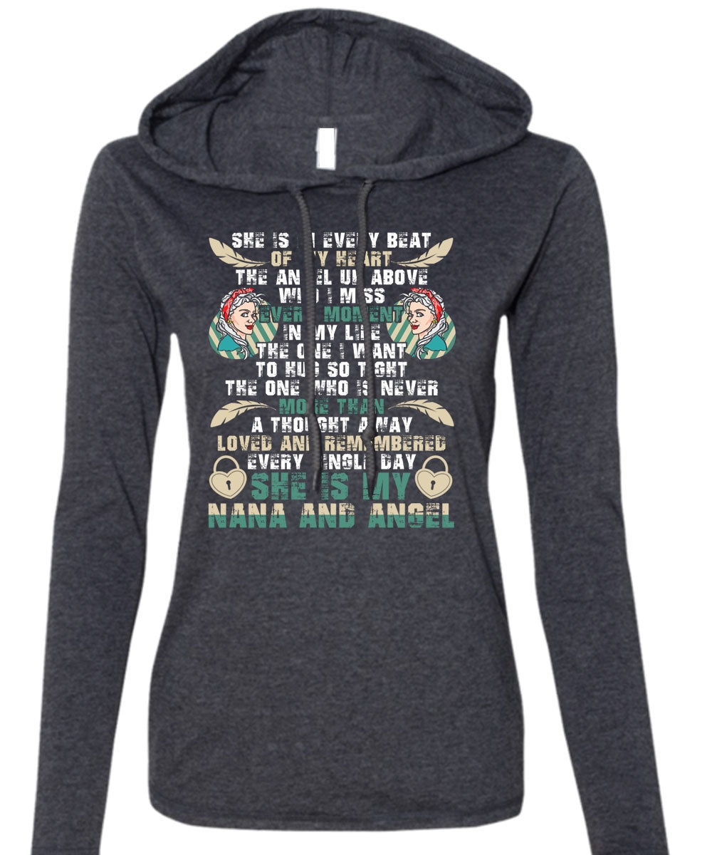 She Is My Nana And Angel T Shirt, Beat Of My Heart T Shirt (Anvil Ladies Ringspun Hooded)