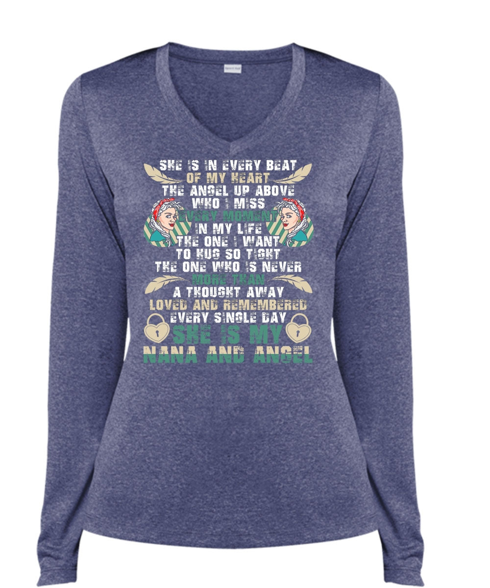 She Is My Nana And Angel T Shirt, Beat Of My Heart T Shirt, Cool Shirt (Ladies LS Heather V-Neck)