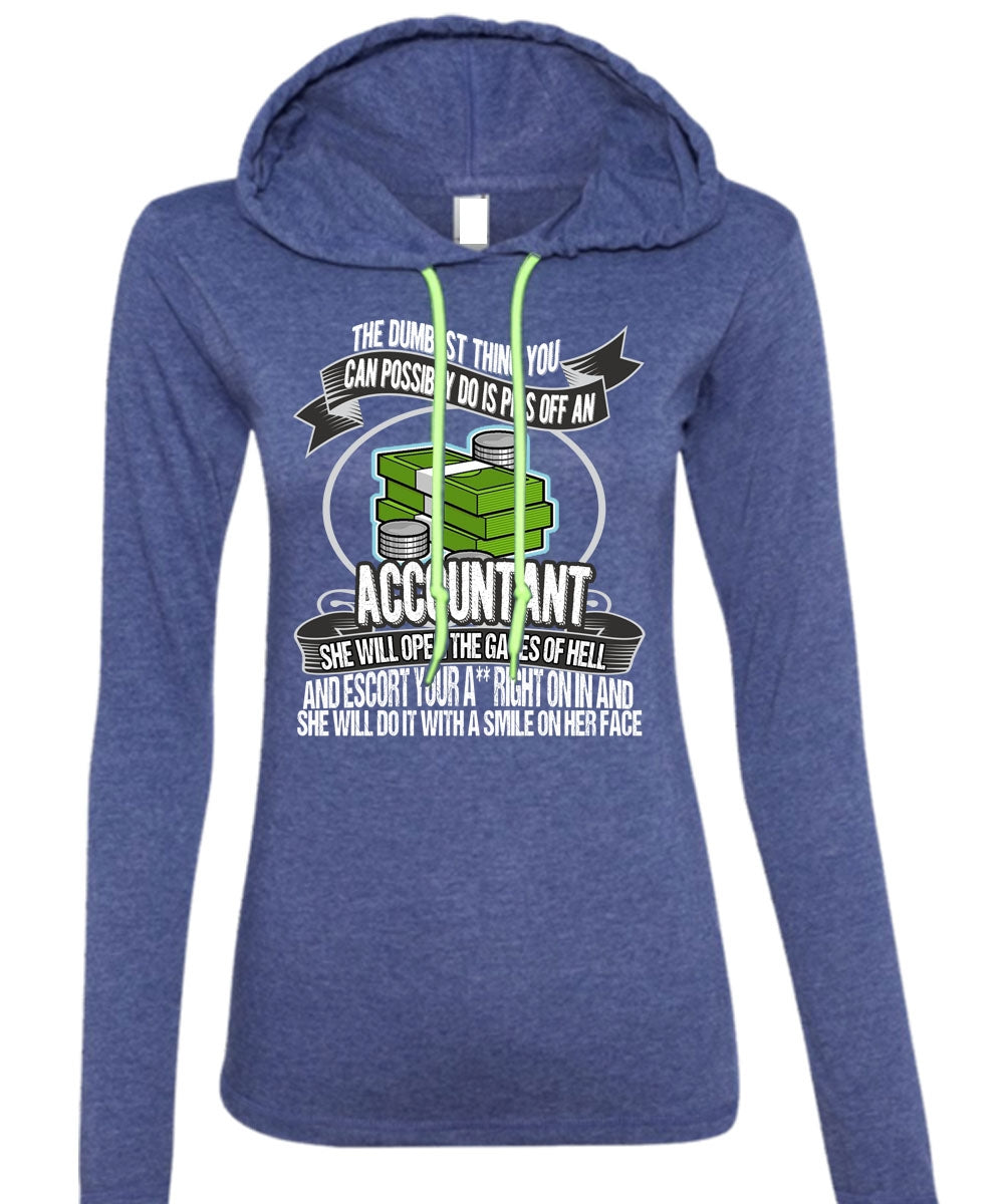 She Will Open The Gates Of Hell T Shirt, Being An Accountant T Shirt (Anvil Ladies Ringspun Hooded)