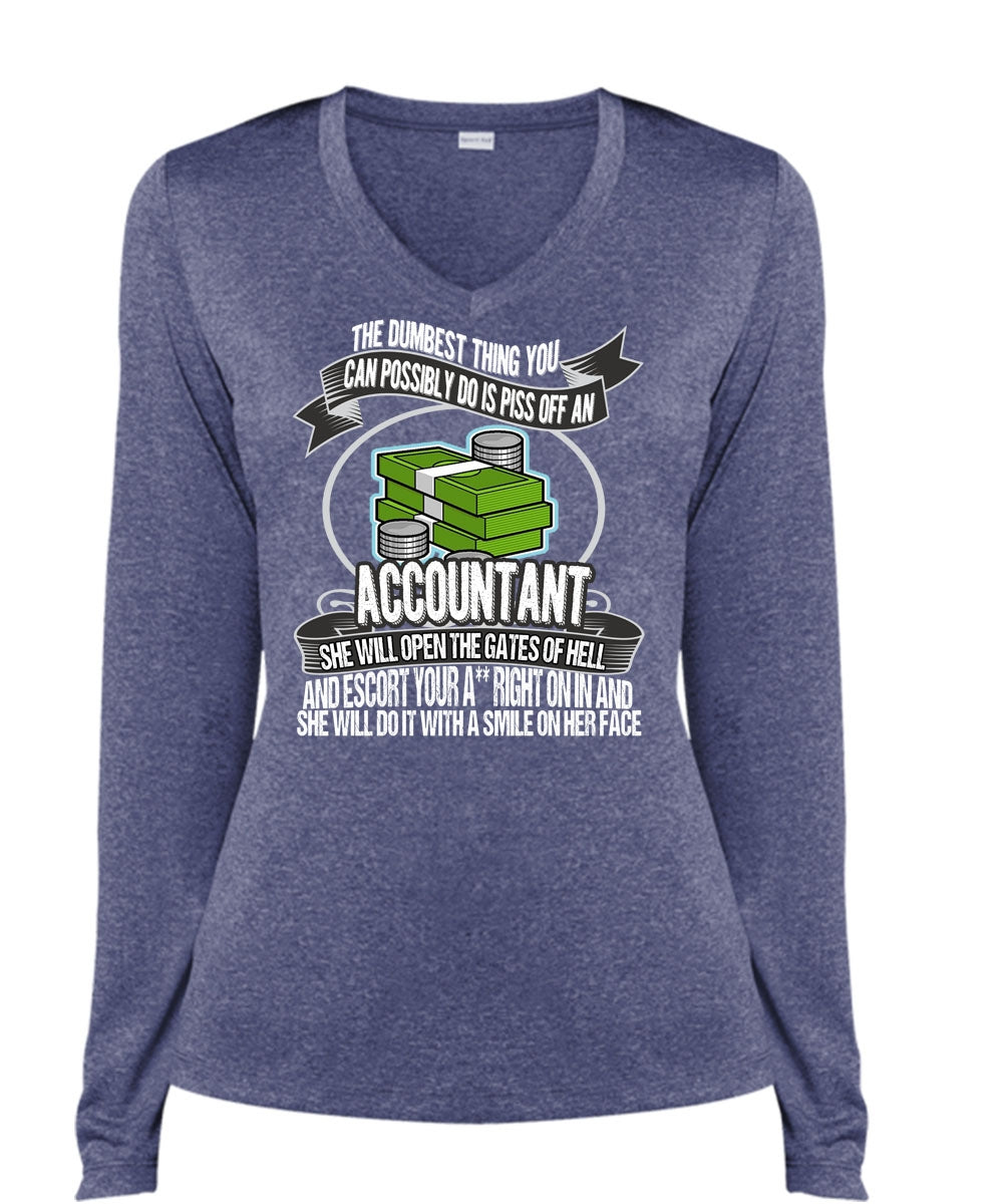 She Will Open The Gates Of Hell T Shirt, Being An Accountant T Shirt, Cool Shirt (Ladies LS Heather V-Neck)