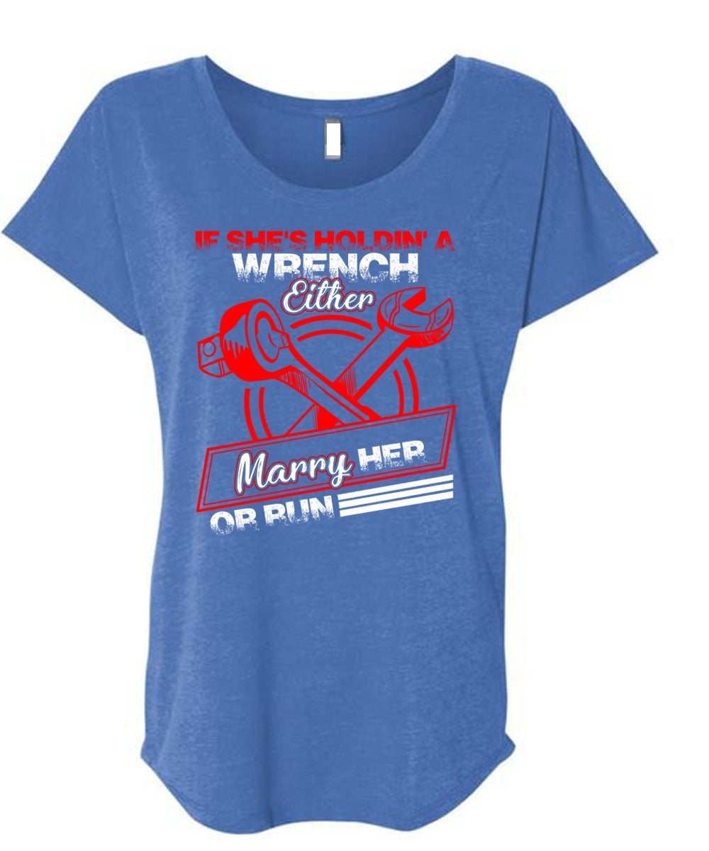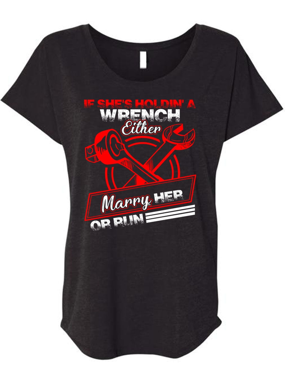 She's Holding A Wrench T Shirt, Marry Her Or Run T Shirt, Cool Shirt (Ladies' Triblend Dolman Sleeve)