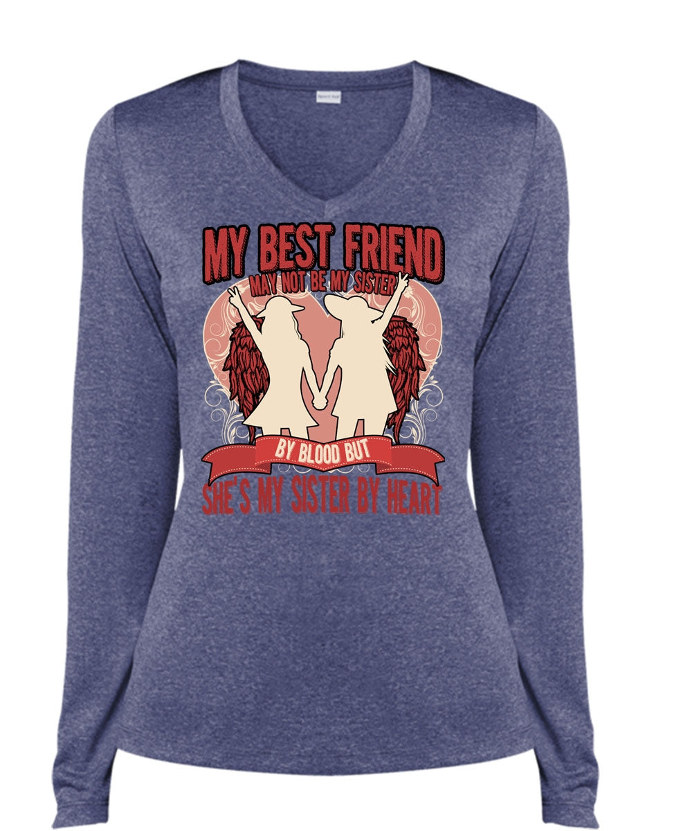 She's My Sister By Heart T Shirt, My Best Friend T Shirt, Cool Shirt (Ladies LS Heather V-Neck)