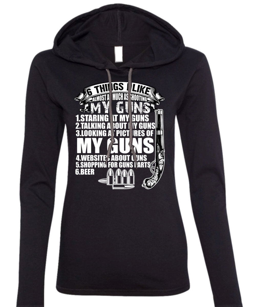Shooting My Guns T Shirt, Being A Veteran T Shirt (Anvil Ladies Ringspun Hooded)