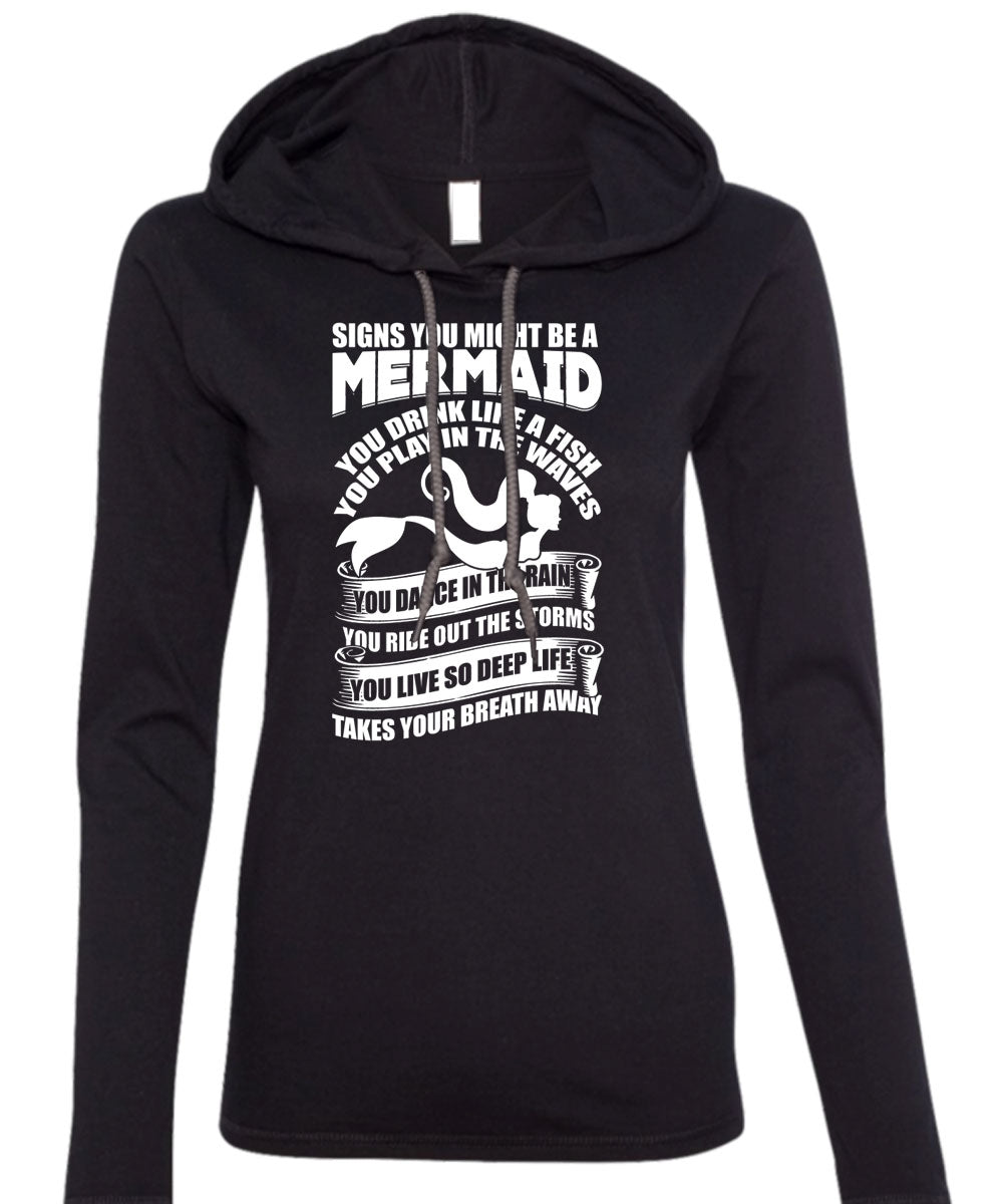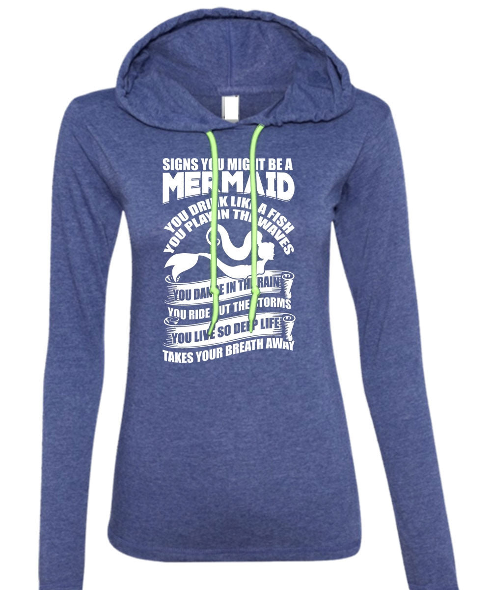 Signs You Might Be A Mermaid T Shirt, Being A Fisher T Shirt (Anvil Ladies Ringspun Hooded)