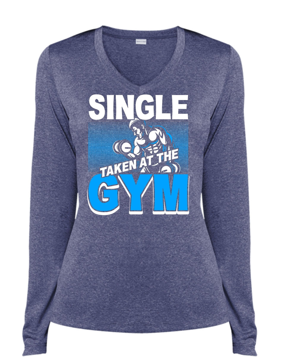 Single Taken At The Gym T Shirt, My Favorite T Shirt, Cool Shirt (Ladies LS Heather V-Neck)