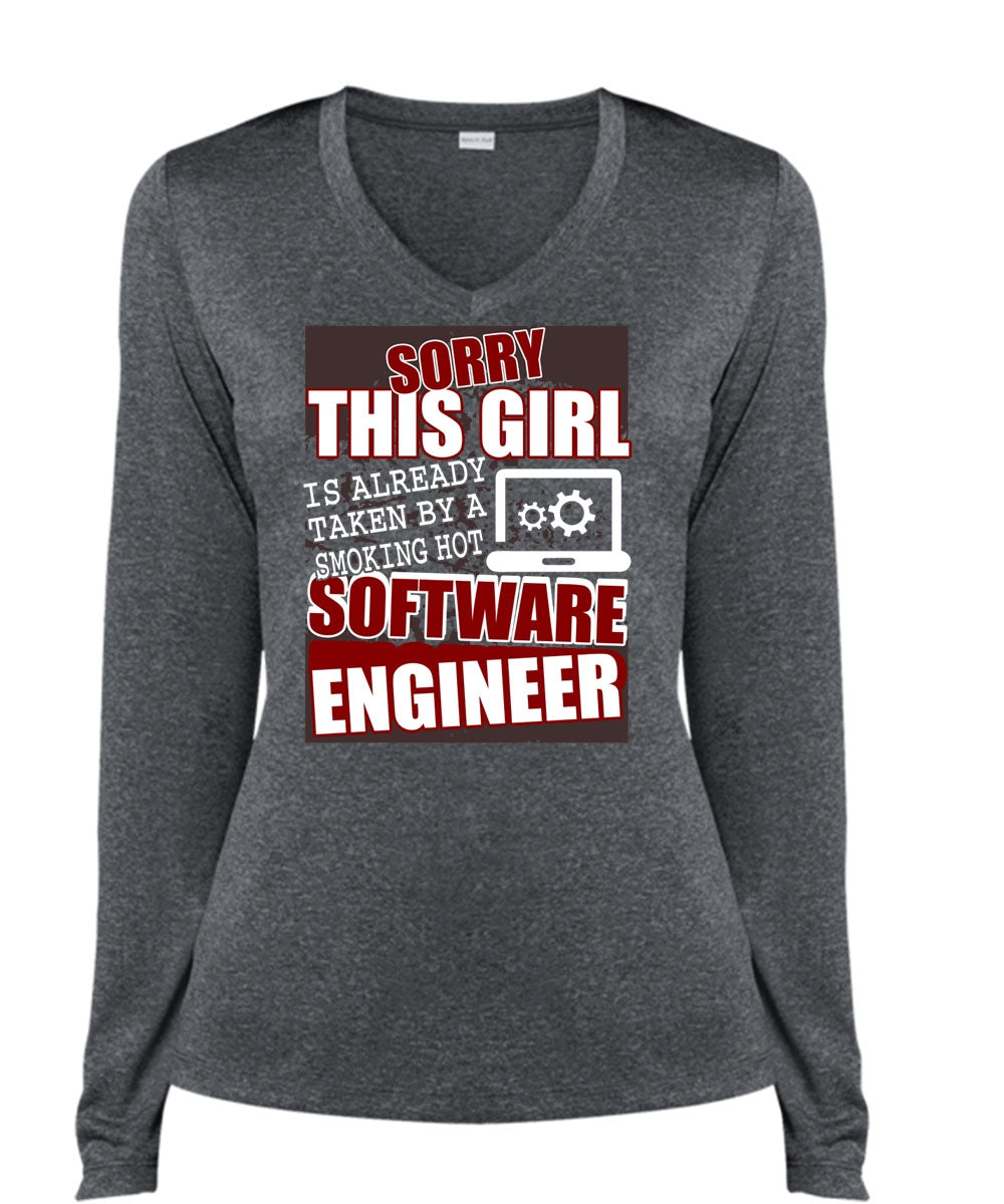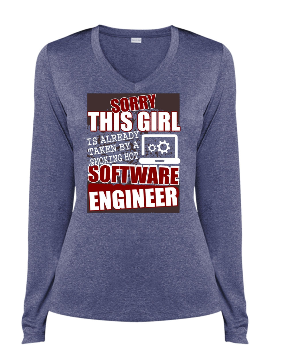 Smoking Hot Software Engineer T Shirt, Being An Engineer T Shirt, Cool Shirt (Ladies LS Heather V-Neck)