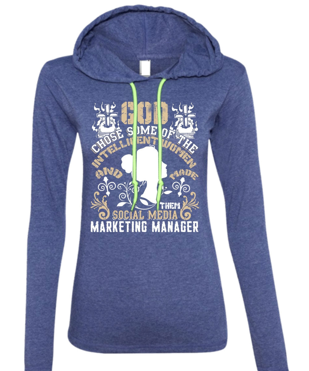 Social Media Marketing Manager T Shirt, Intelligent Women T Shirt (Anvil Ladies Ringspun Hooded)