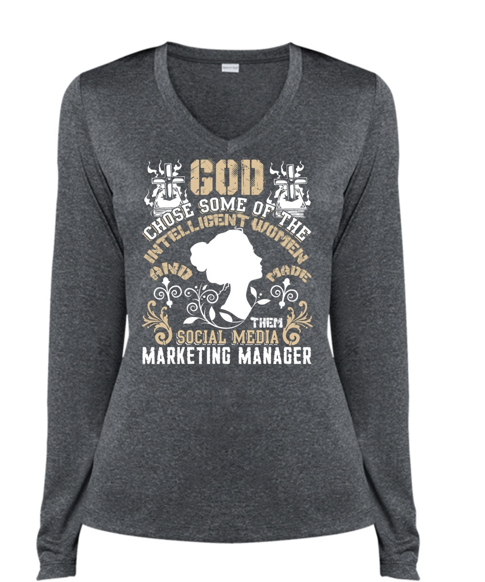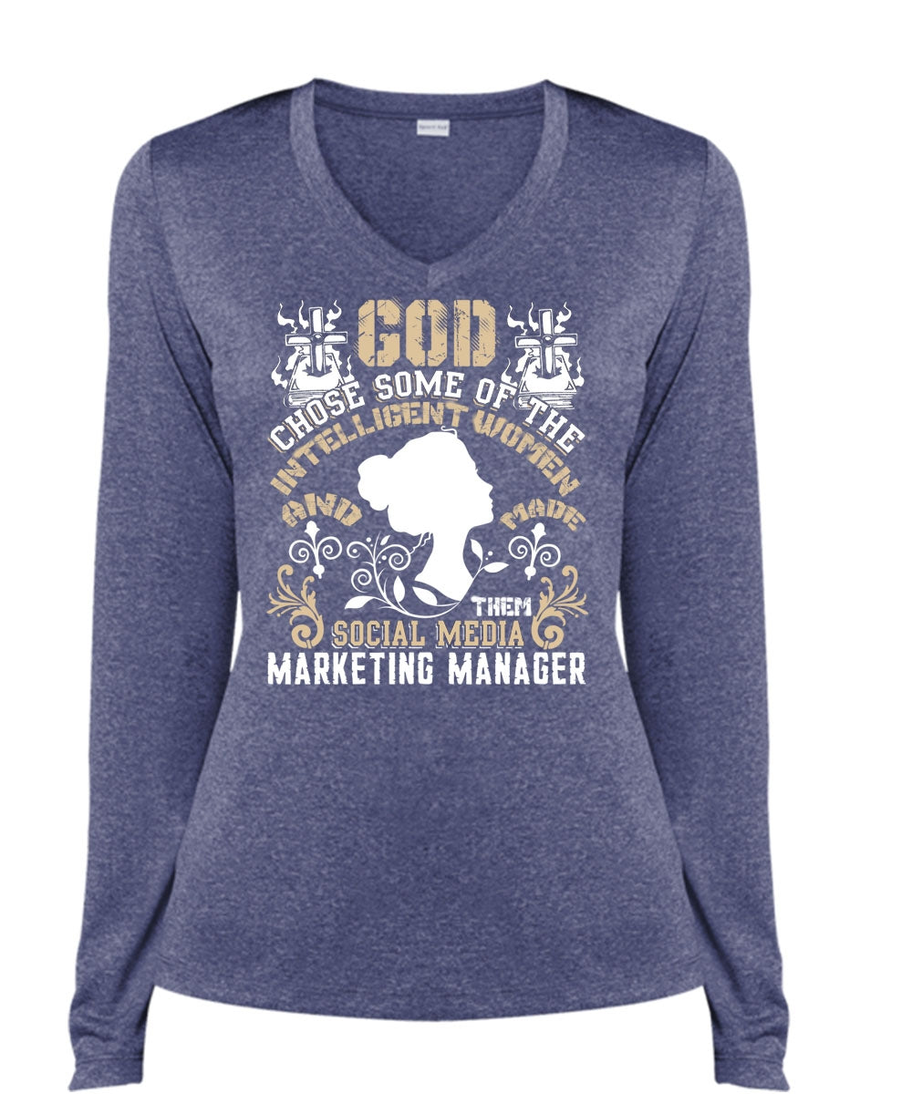 Social Media Marketing Manager T Shirt, Intelligent Women T Shirt, Cool Shirt (Ladies LS Heather V-Neck)