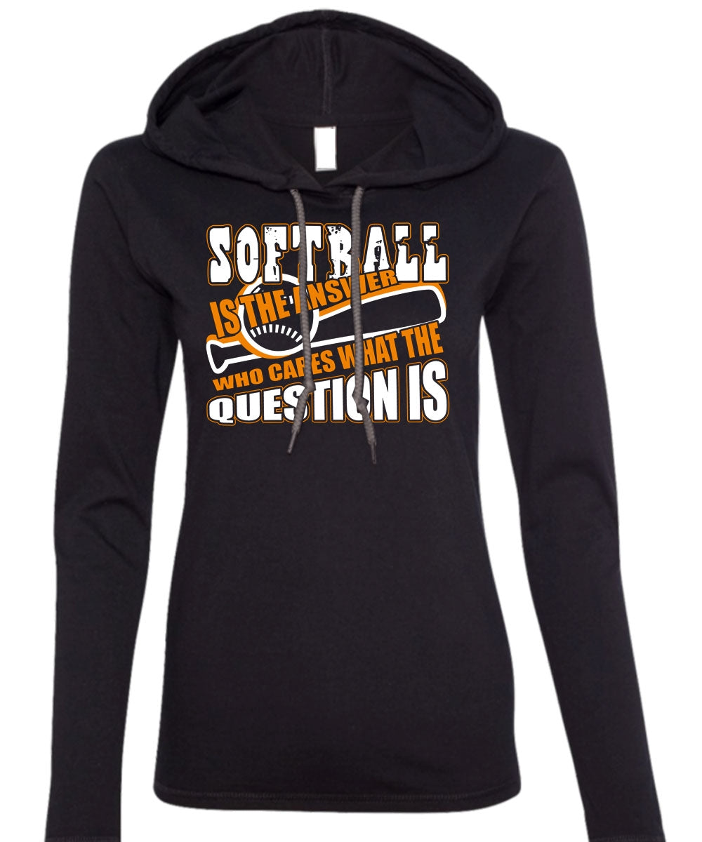 Softball Is The Answer T Shirt, Being A Softball Player T Shirt (Anvil Ladies Ringspun Hooded)