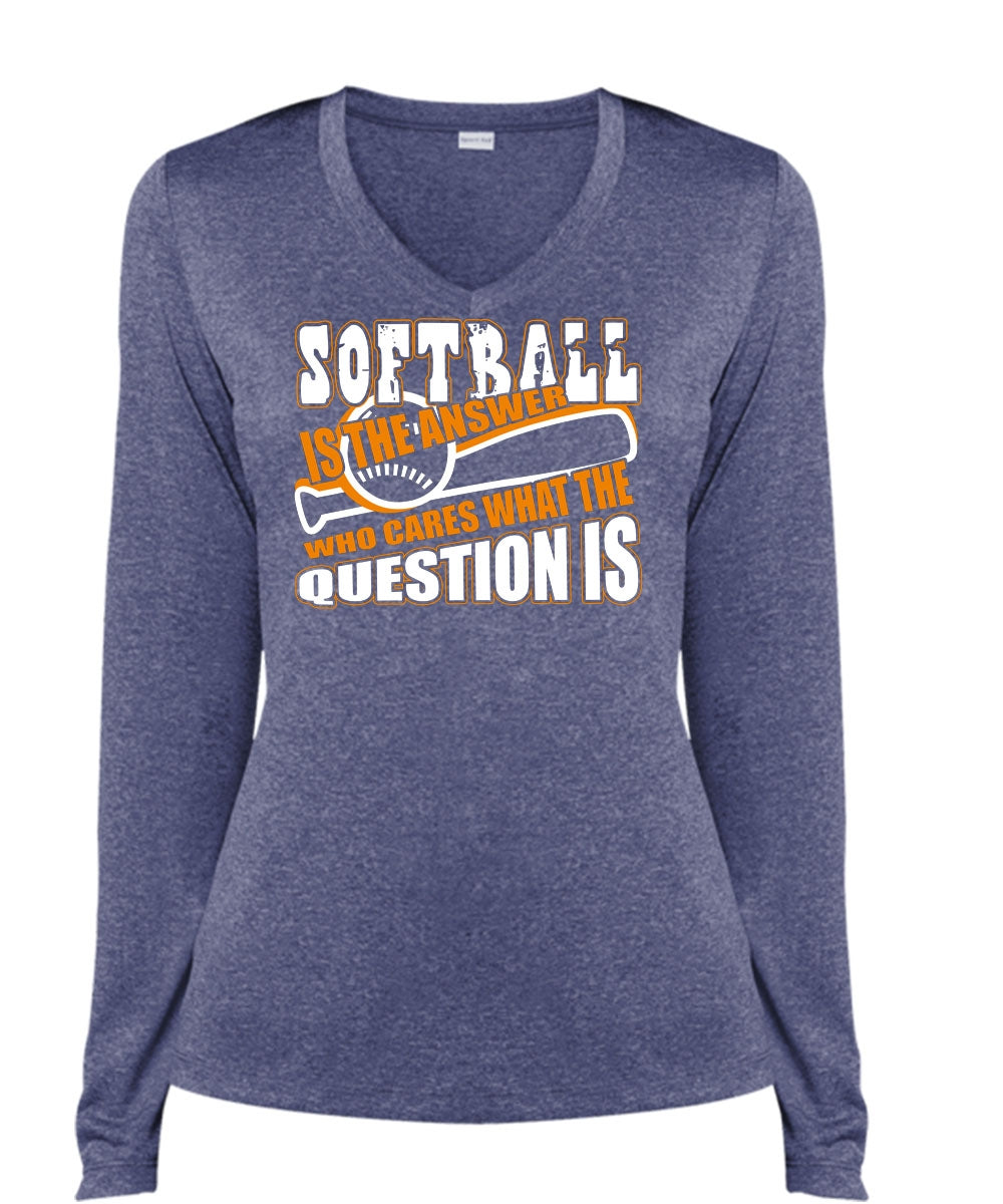 Softball Is The Answer T Shirt, Being A Softball Player T Shirt, Cool Shirt (Ladies LS Heather V-Neck)