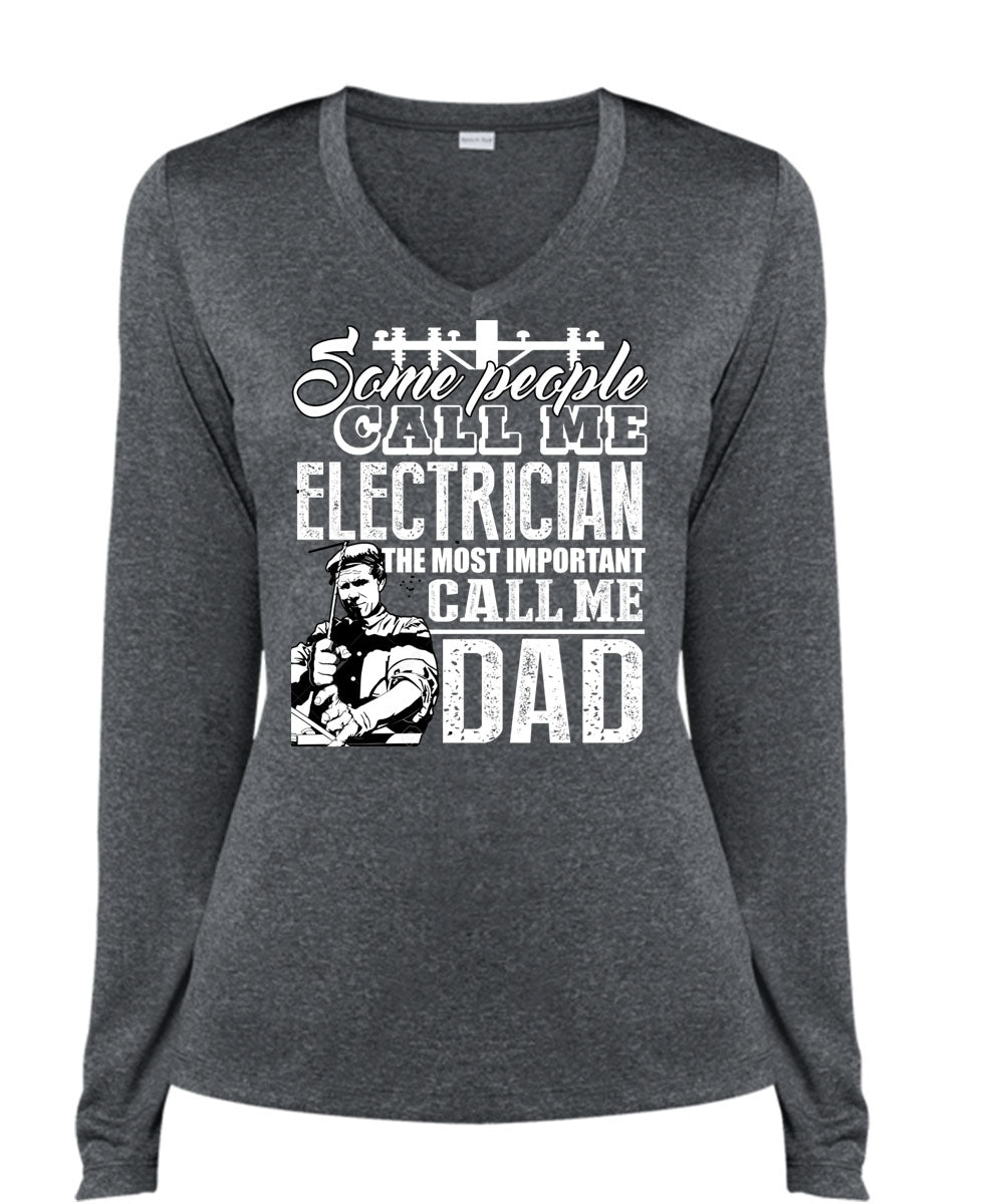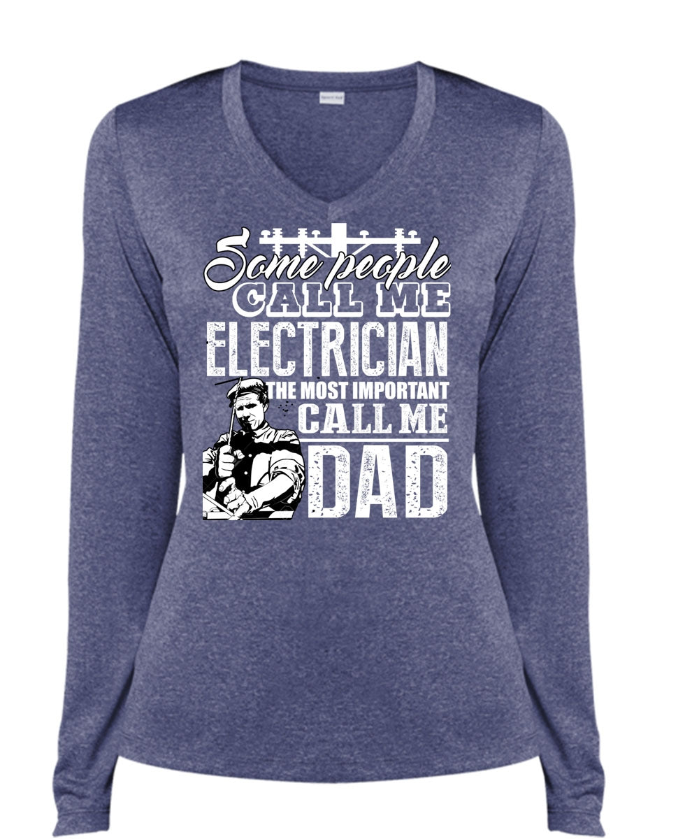 Some People Call Me Electrician T Shirt, Call Me Dad T Shirt, Cool Shirt (Ladies LS Heather V-Neck)
