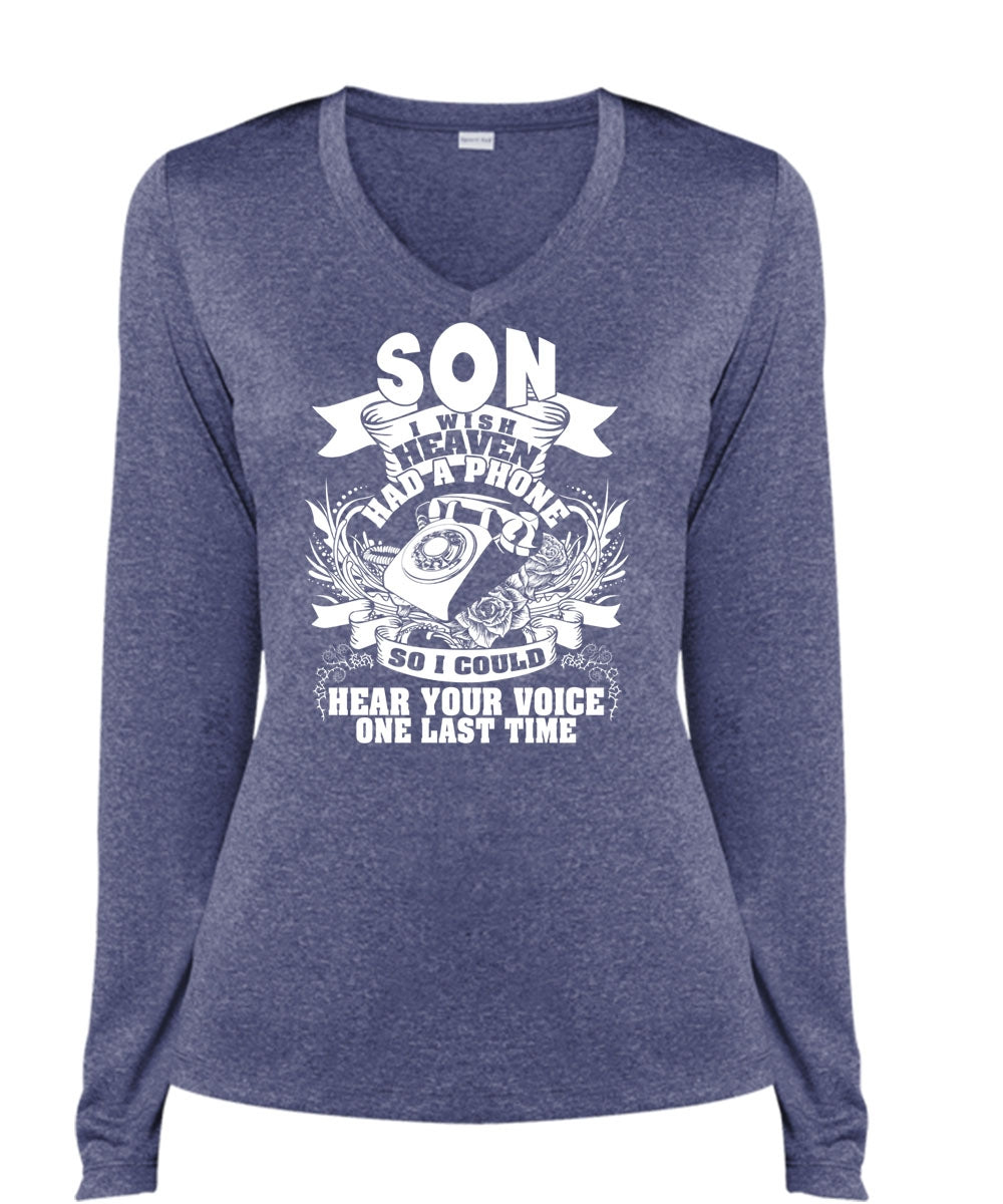 Son I Wish Heaven Had A Phone T Shirt, Hear Your Voice T Shirt, Cool Shirt (Ladies LS Heather V-Neck)