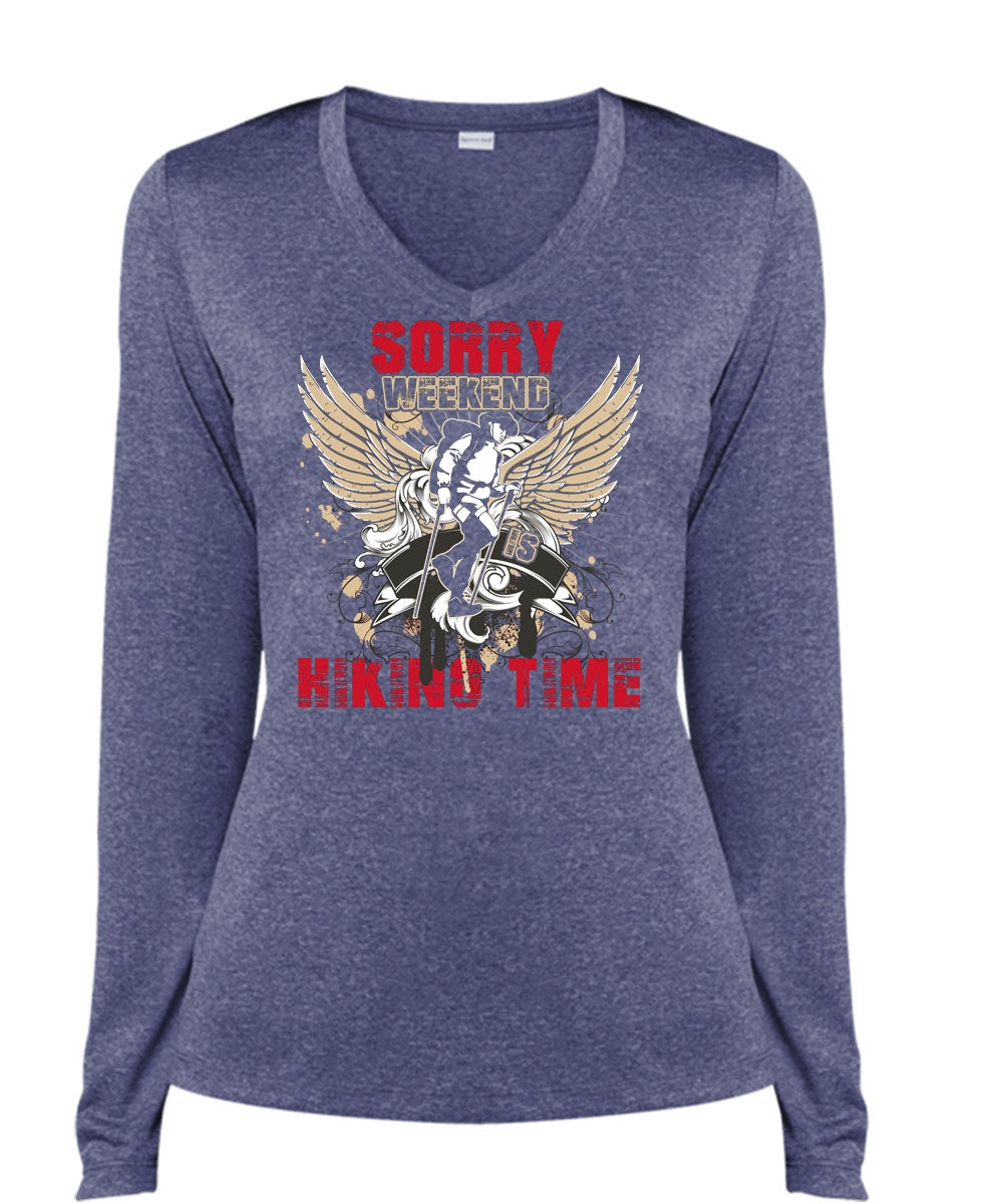 Sorry Weekend Is Hiking Time T Shirt, Being A Hiker T Shirt, Cool Shirt (Ladies LS Heather V-Neck)