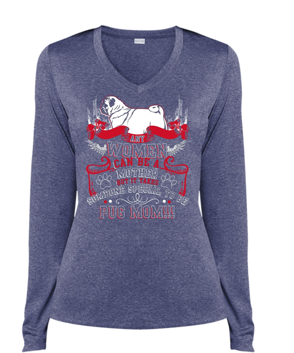 Special To Be Pug Mom T Shirt, Women Can Be A Mother T Shirt, Cool Shirt (Ladies LS Heather V-Neck)