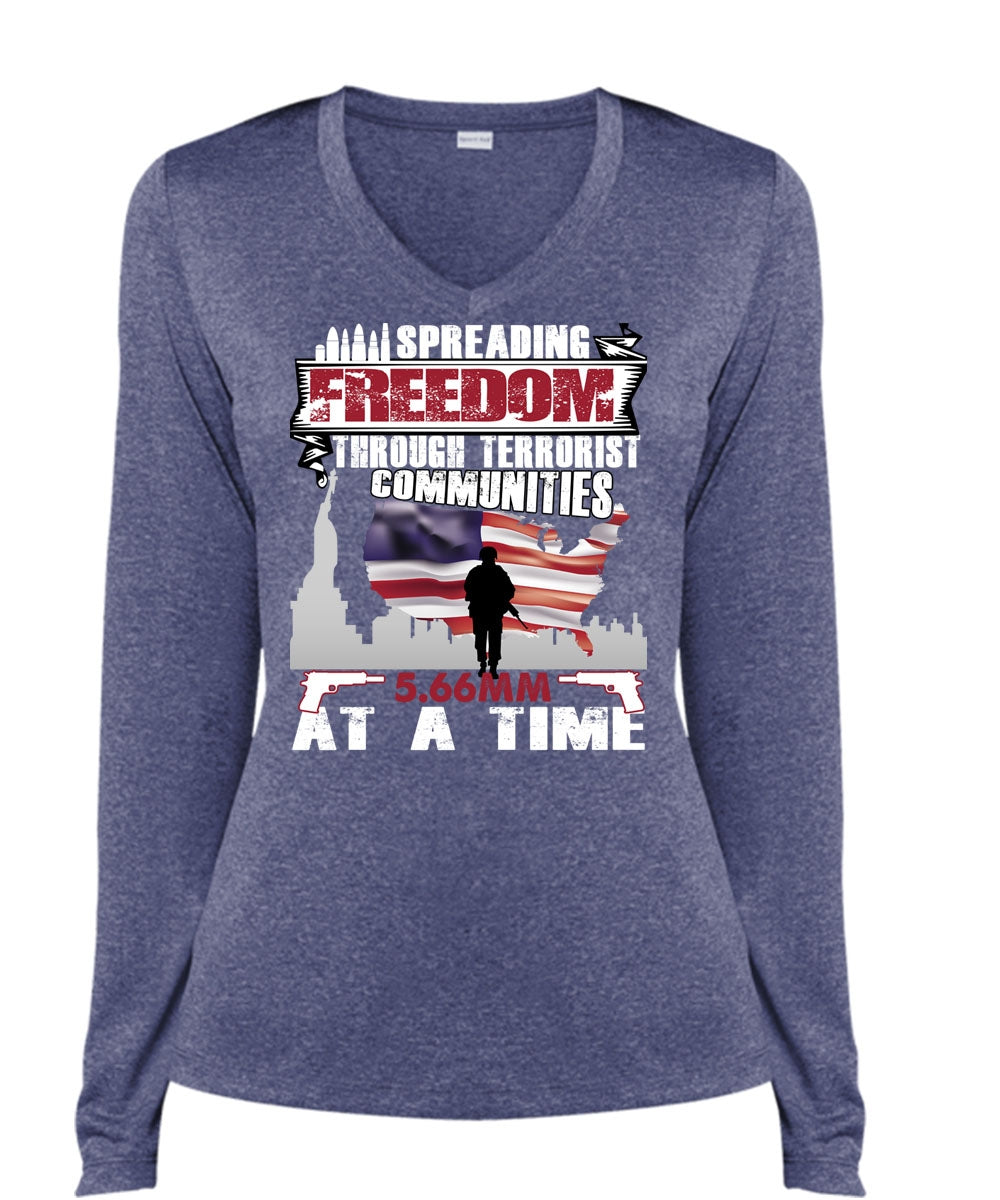 Spreading Freedom T Shirt, Being A Veteran T Shirt, Cool Shirt (Ladies LS Heather V-Neck)