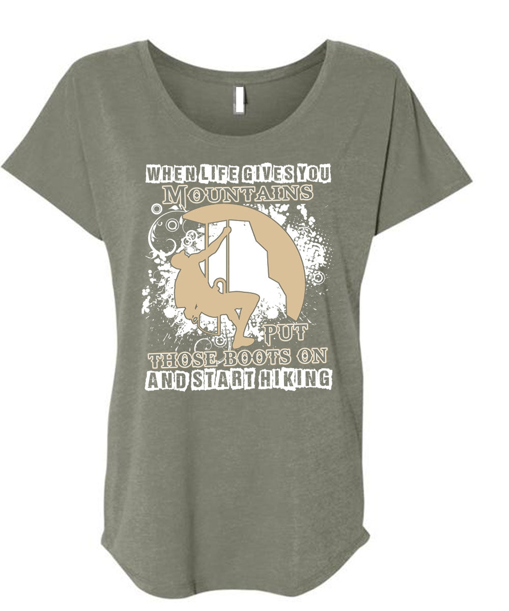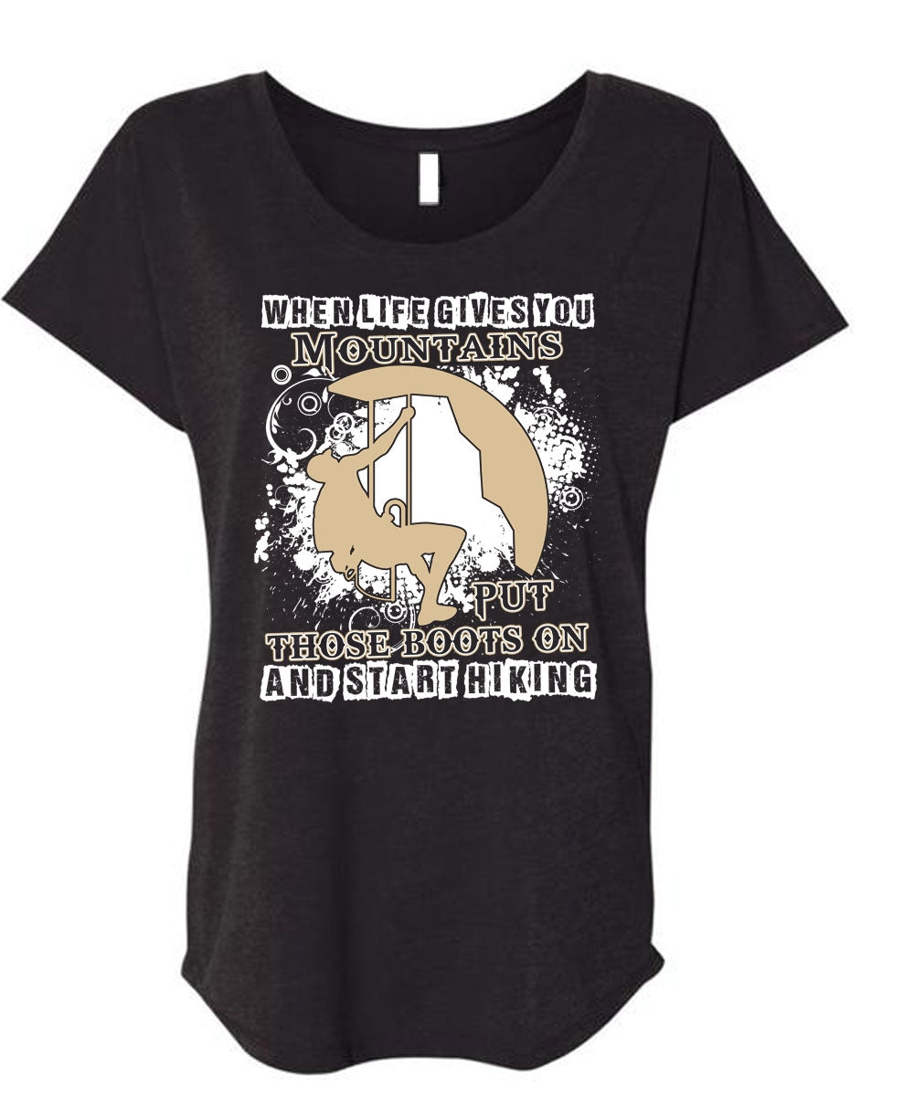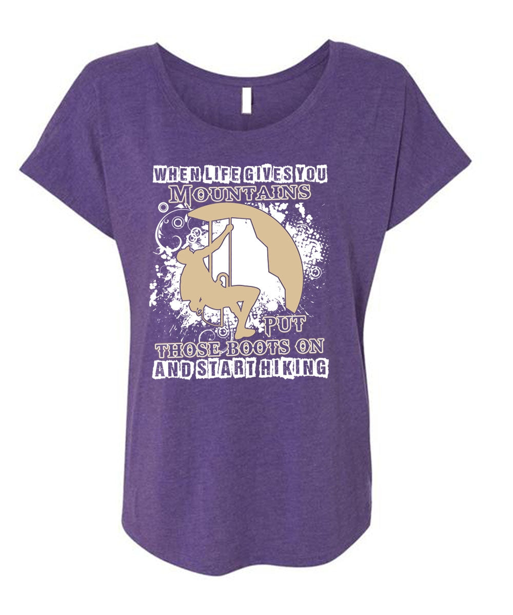 Start Hiking T Shirt, You Mountains Put Those Boots T Shirt, Cool Shirt (Ladies' Triblend Dolman Sleeve)