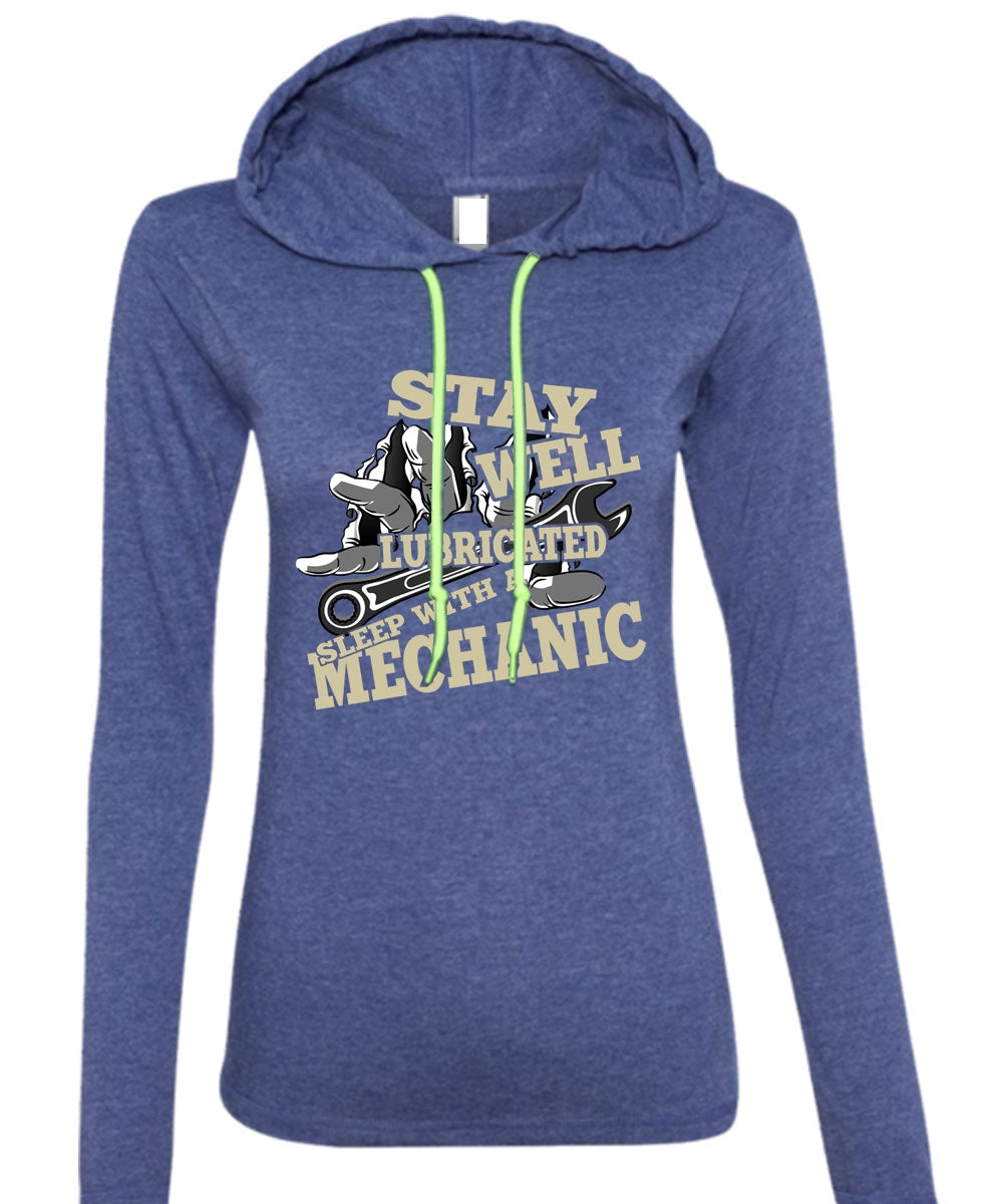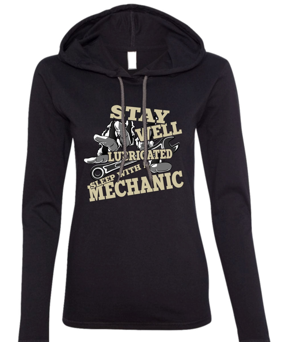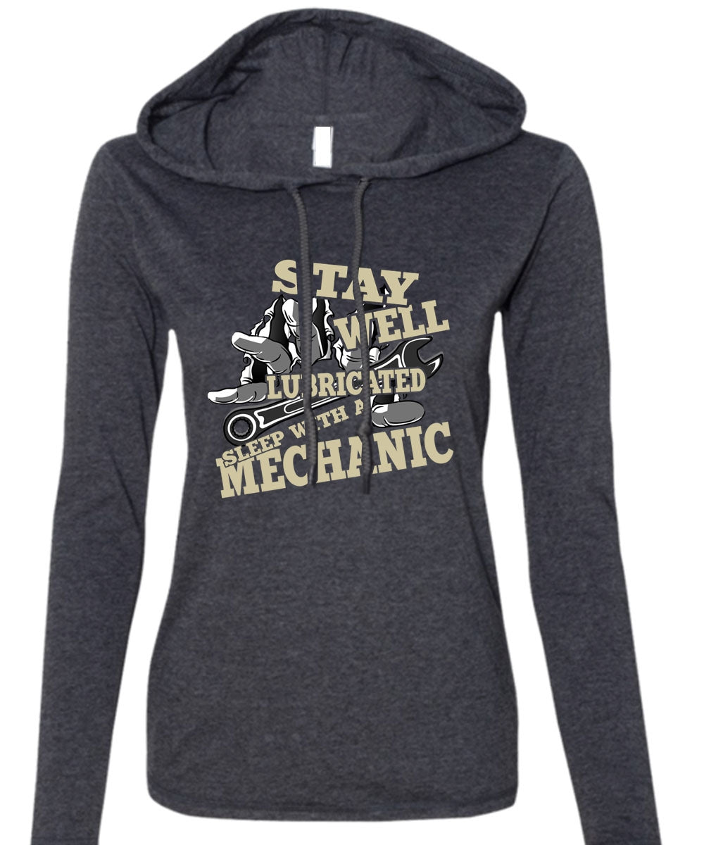 Stay Well Lubricated Sleep With A Mechanic T Shirt, Being A Mechanic T Shirt (Anvil Ladies Ringspun Hooded)