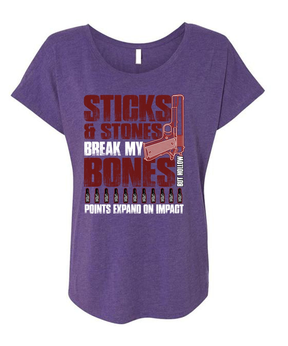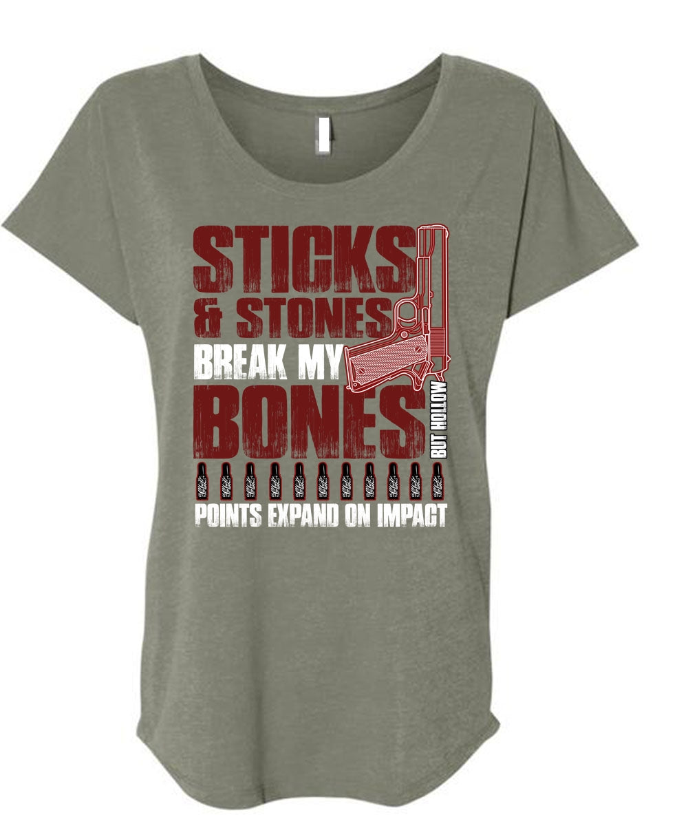 Sticks And Stones T Shirt, Being A Gunner T Shirt, Cool Shirt (Ladies' Triblend Dolman Sleeve)