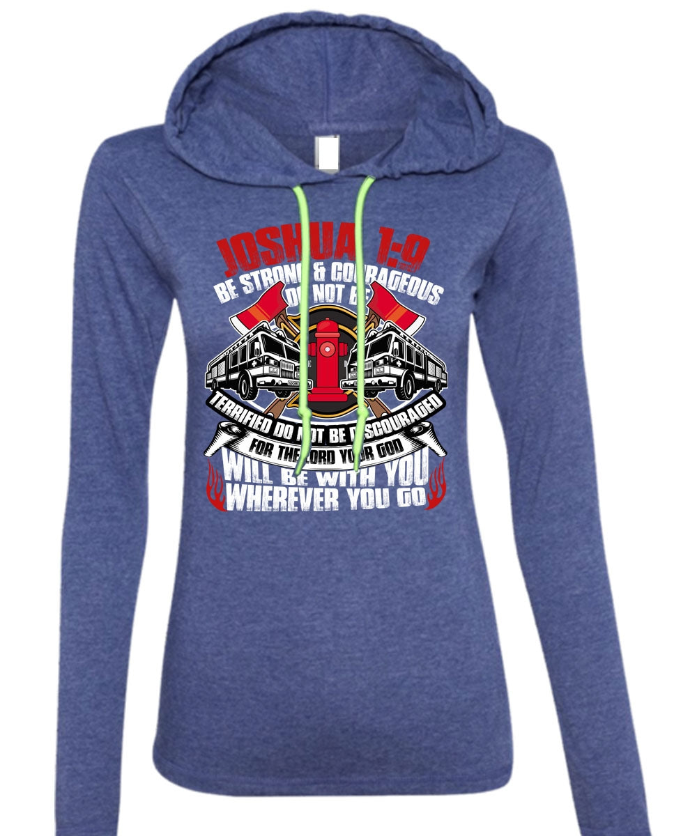 Strong And Courageous Do Not Be T Shirt, Being A Firefighter T Shirt (Anvil Ladies Ringspun Hooded)
