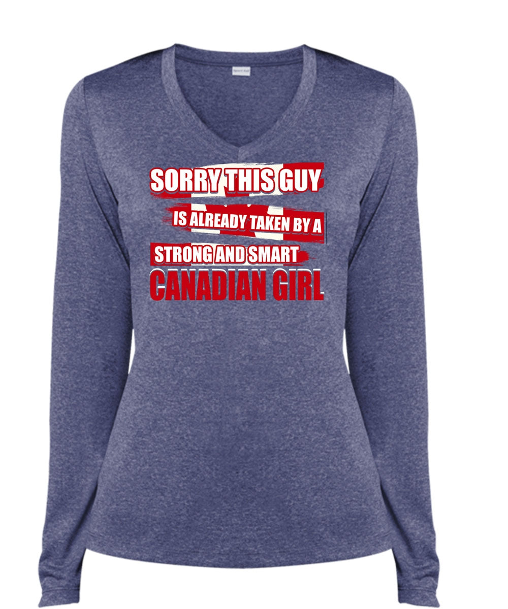 Strong And Smart Canadian Girl T Shirt, Being A Girlfriend T Shirt, Cool Shirt (Ladies LS Heather V-Neck)