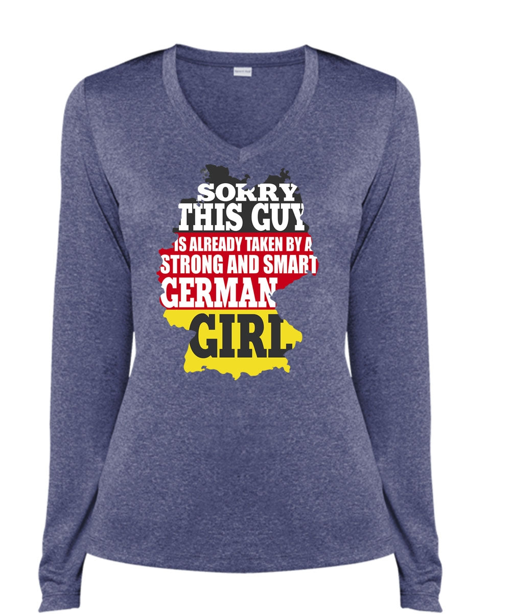 Strong And Smart German Girl T Shirt, Being A Girlfriend T Shirt, Cool Shirt (Ladies LS Heather V-Neck)