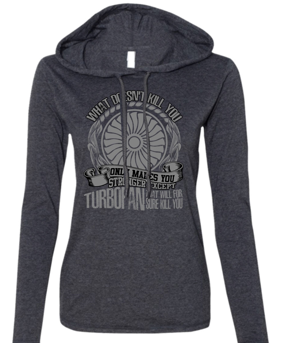 Strong Except Turbofan T Shirt, Being A Mechanic T Shirt (Anvil Ladies Ringspun Hooded)