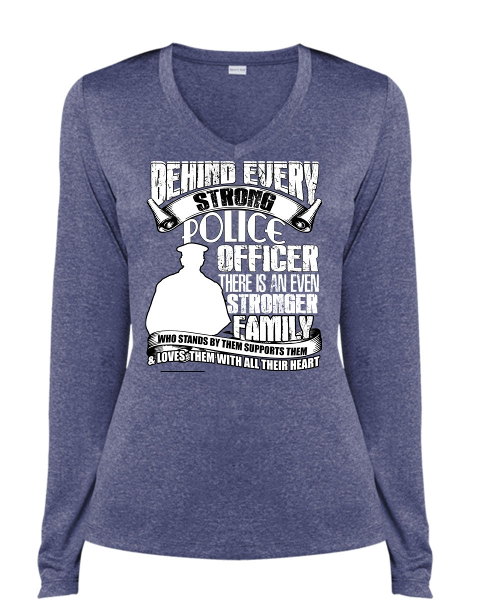 Strong Police Officer T Shirt, Stronger Family T Shirt, Cool Shirt (Ladies LS Heather V-Neck)