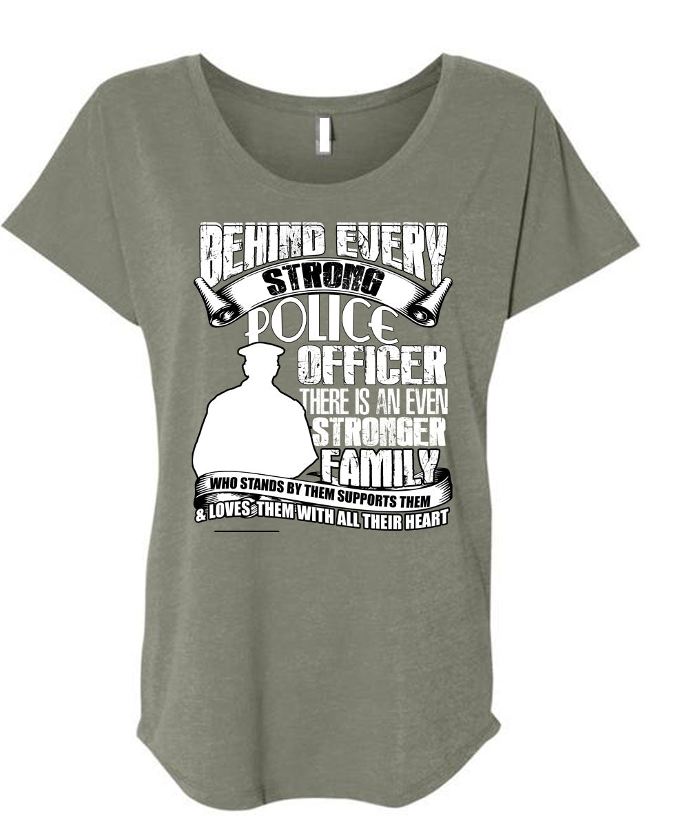 Strong Police Officer T Shirt, Stronger Family T Shirt, Cool Shirt (Ladies' Triblend Dolman Sleeve)