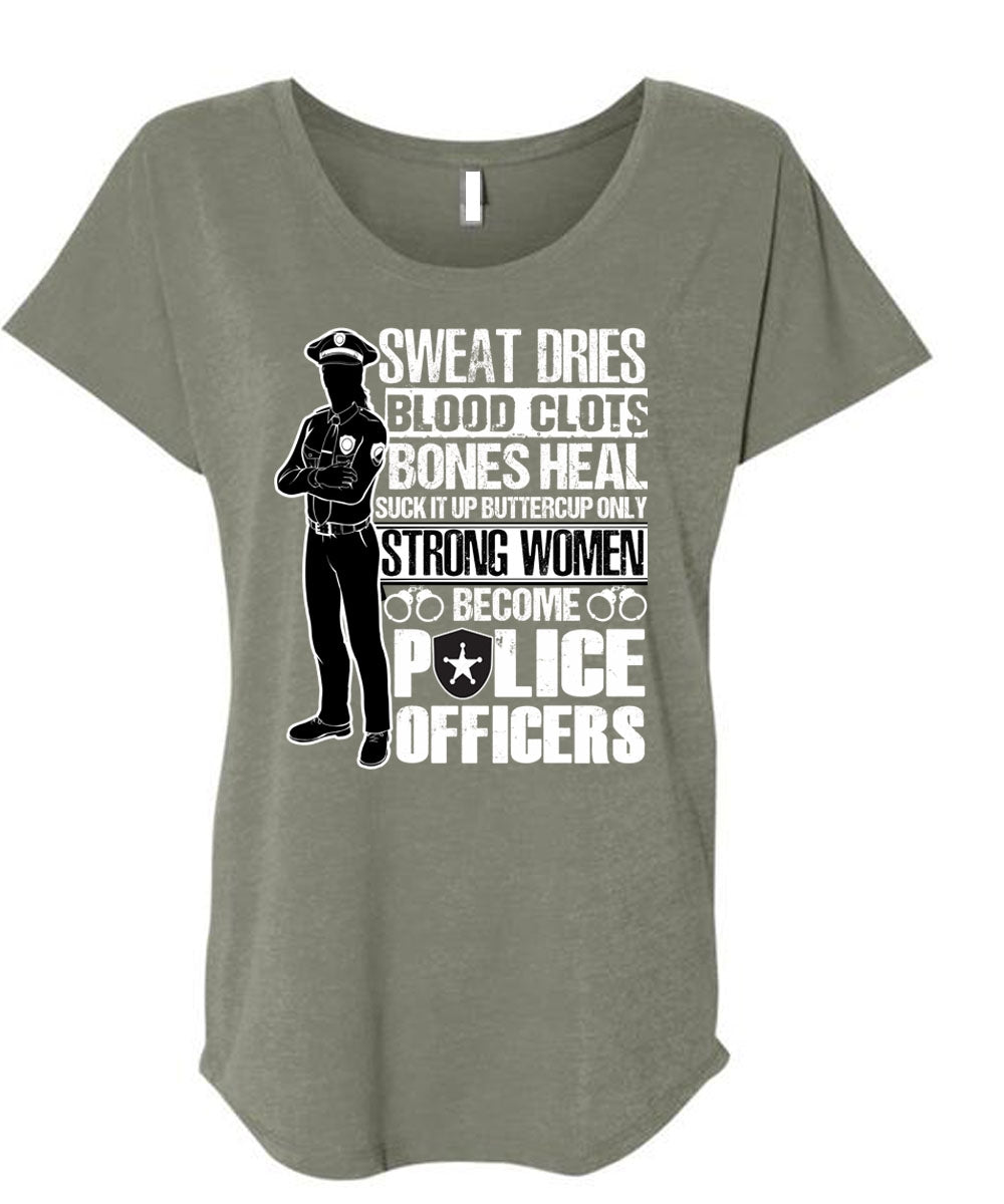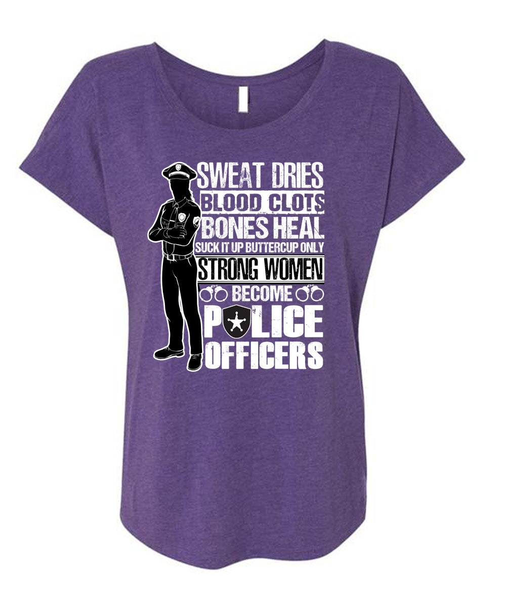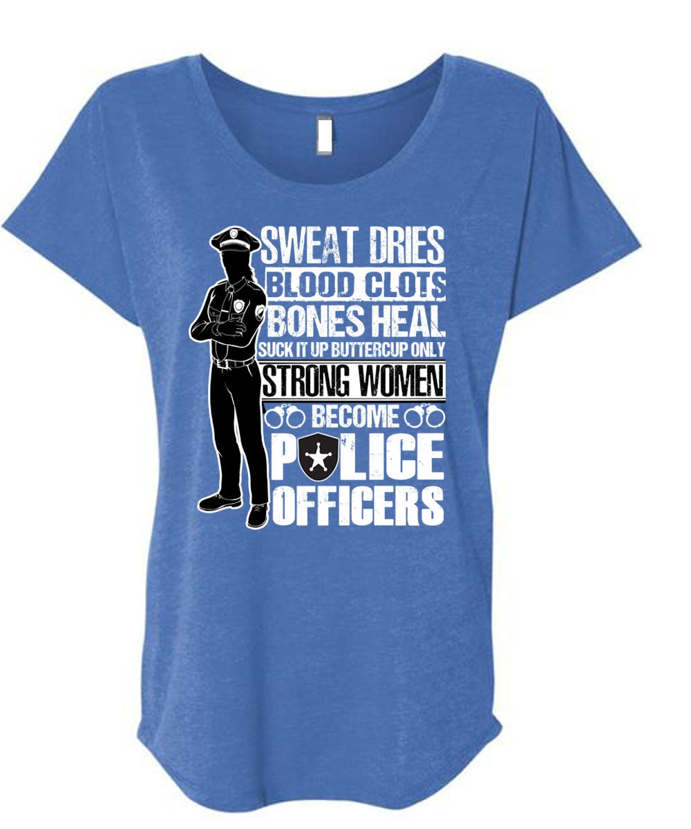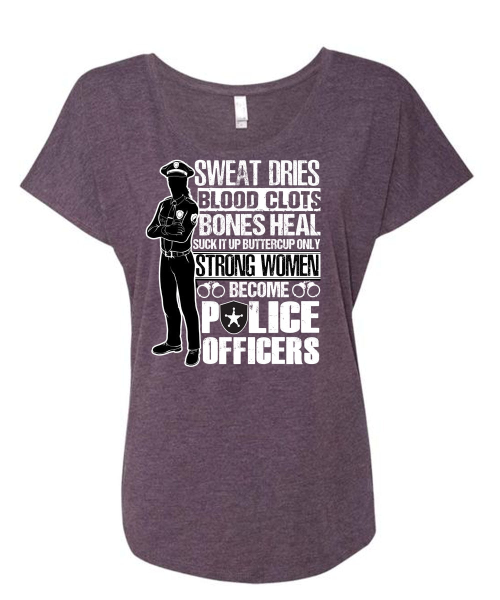 Strong Women Become Police Officers T Shirt, Sweat Dries T Shirt, Cool Shirt (Ladies' Triblend Dolman Sleeve)