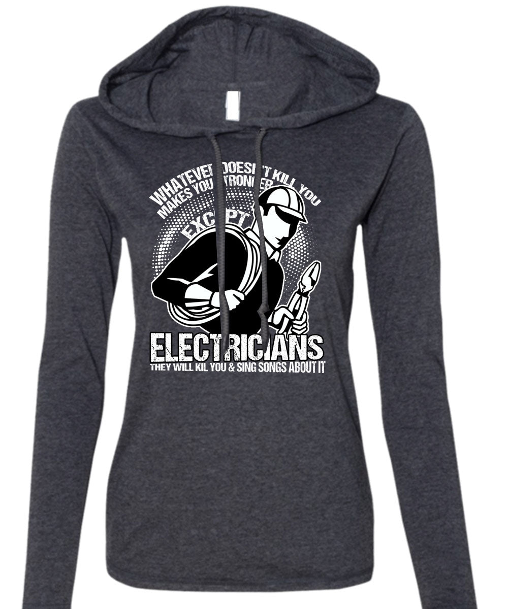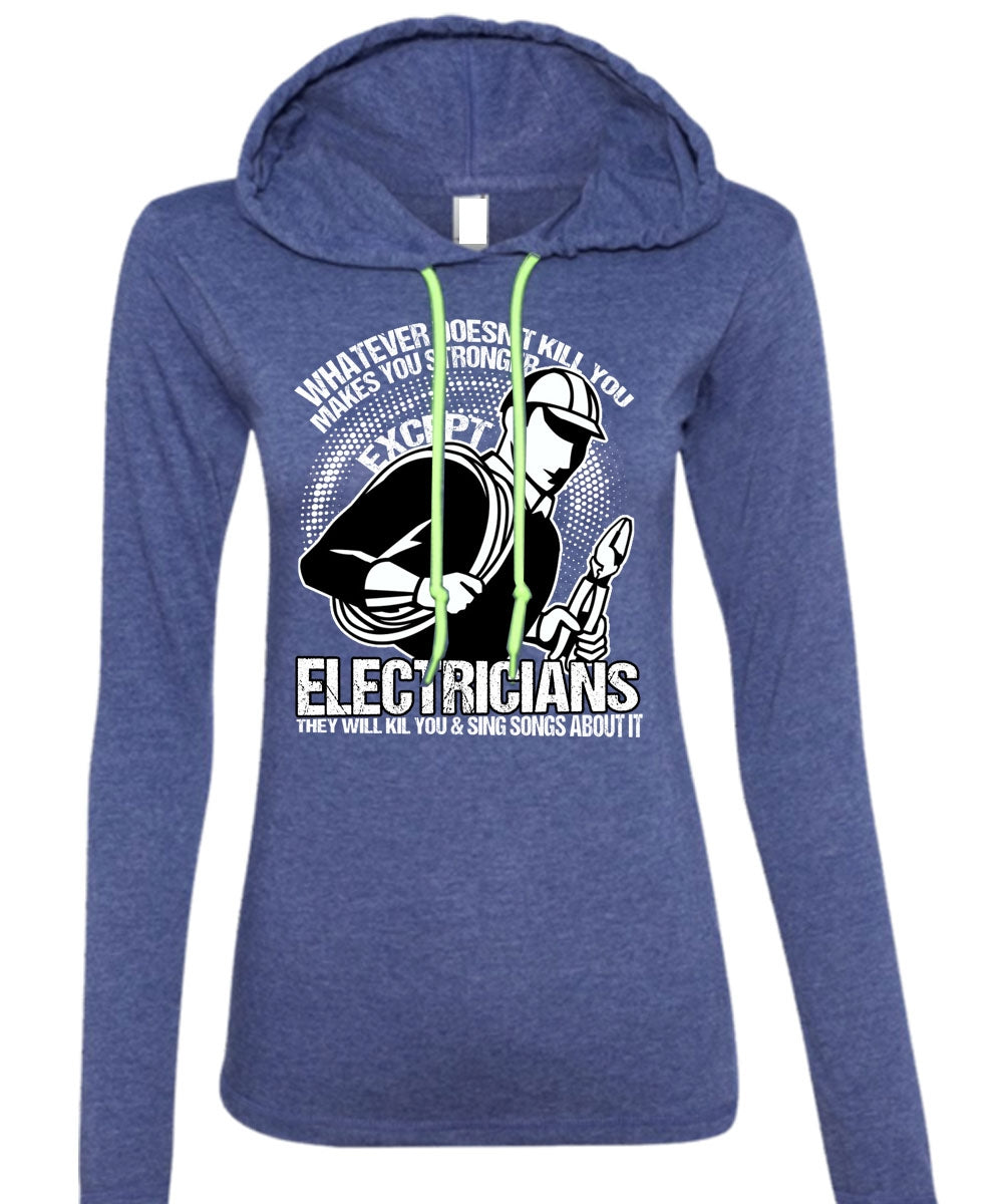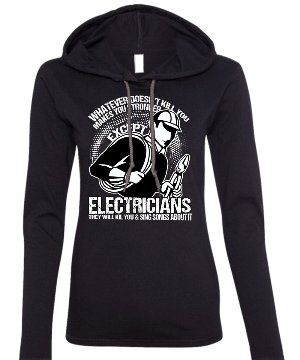 Stronger Except Electricians T Shirt, Being An Electrician T Shirt (Anvil Ladies Ringspun Hooded)