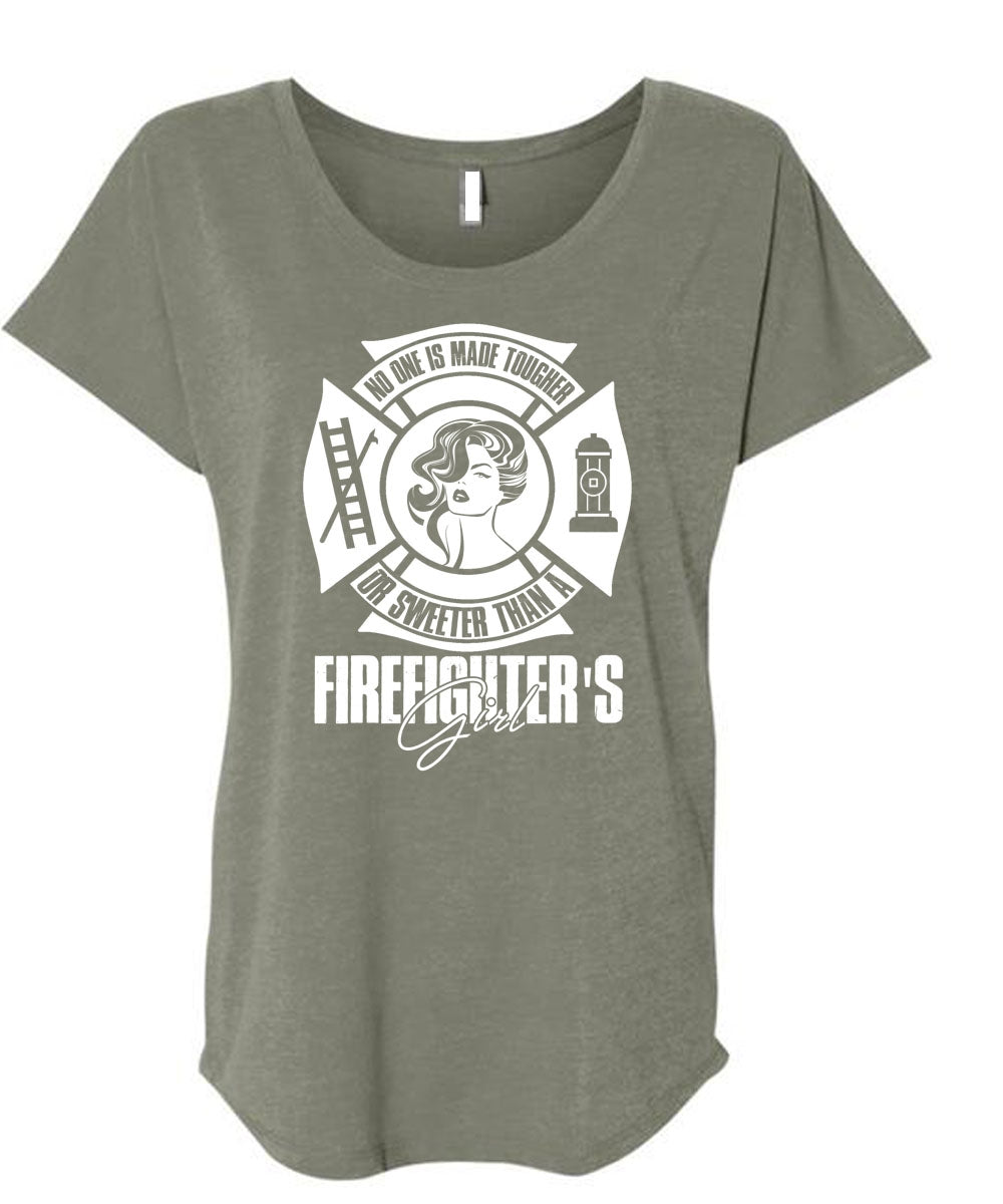 Sweetest Than A Firefighter's Girl T Shirt, Being A Firefighter T Shirt, Cool Shirt (Ladies' Triblend Dolman Sleeve)