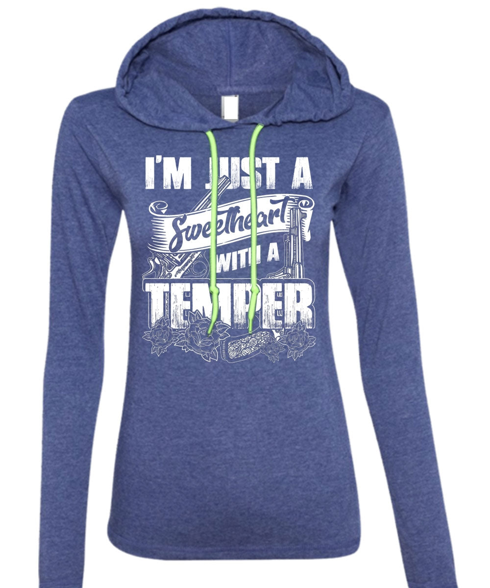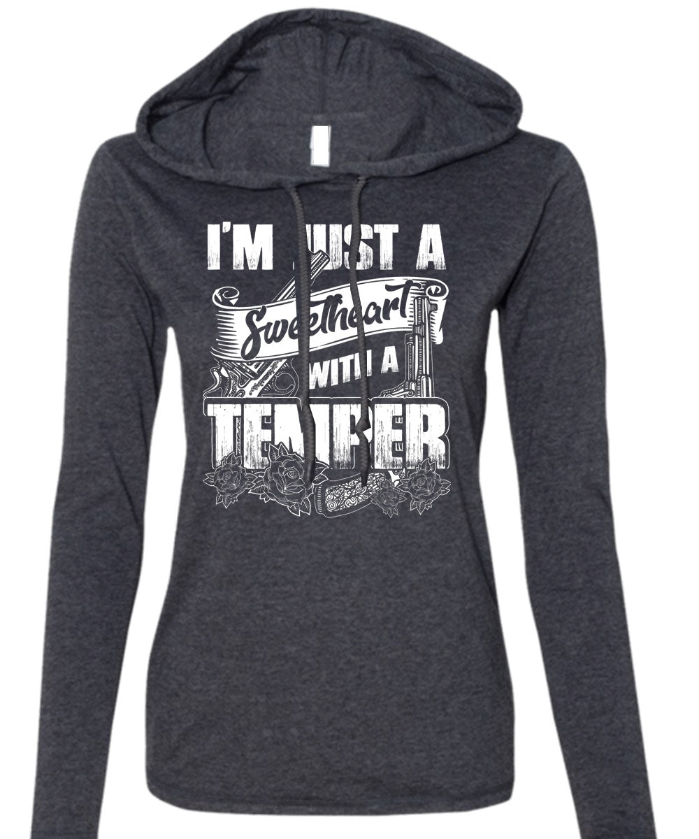 Sweetheart With A Temper T Shirt, Being A Hunter T Shirt (Anvil Ladies Ringspun Hooded)