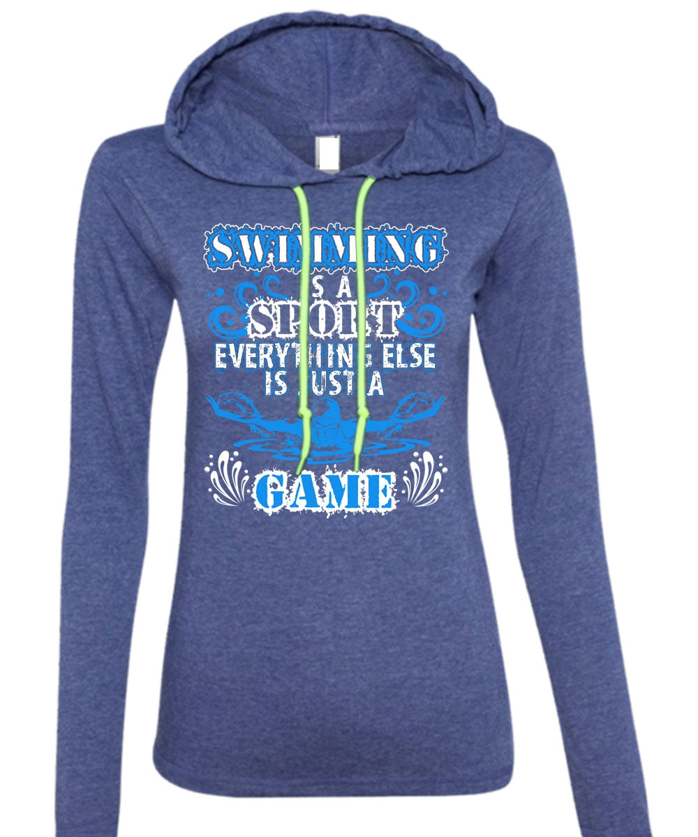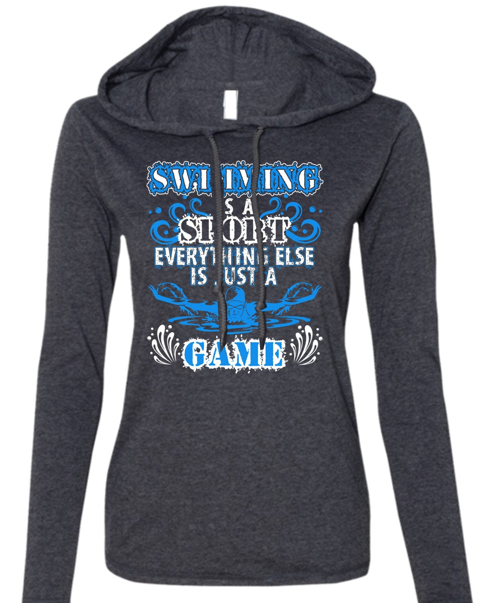 Swimming Is A Sport T Shirt, Just A Game T Shirt (Anvil Ladies Ringspun Hooded)