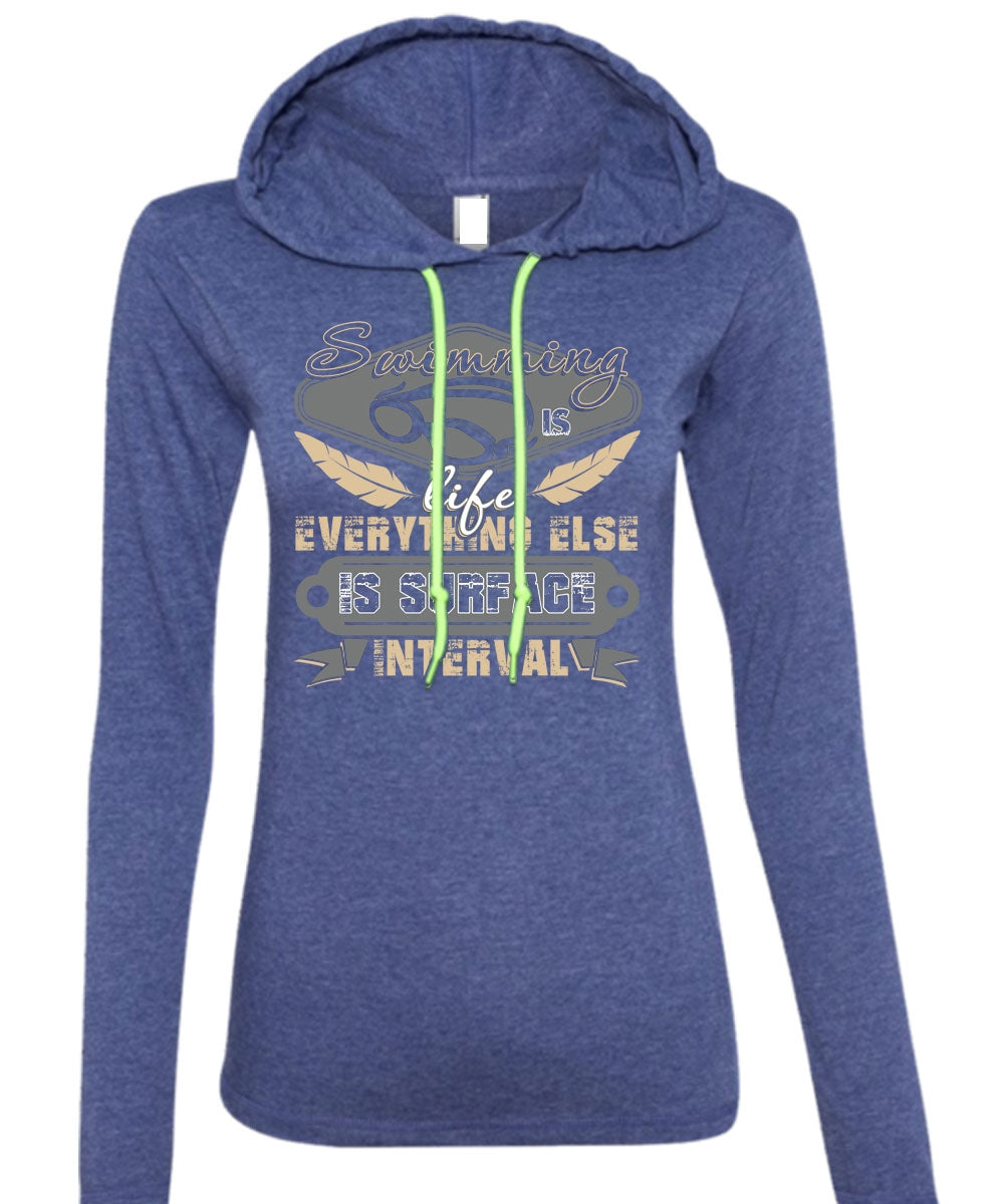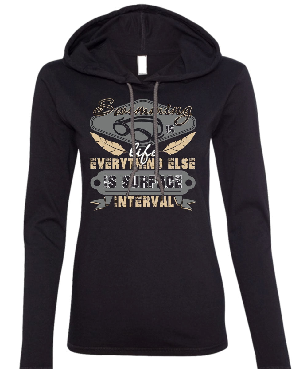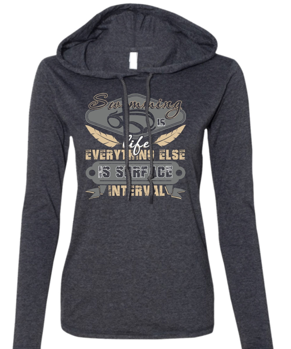 Swimming Is Life T Shirt, Else Is Surface Interval T Shirt (Anvil Ladies Ringspun Hooded)