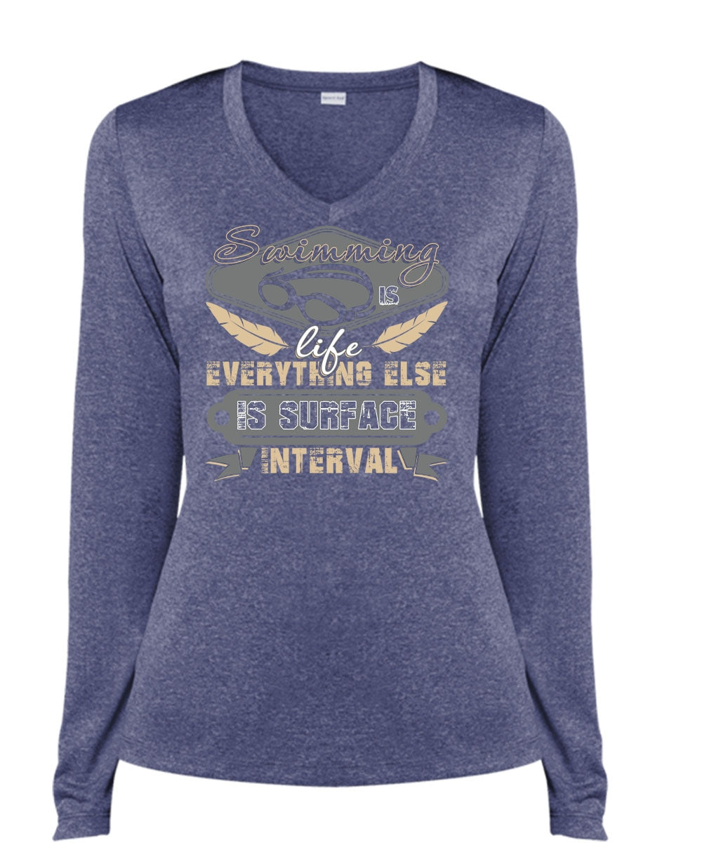 Swimming Is Life T Shirt, Else Is Surface Interval T Shirt, Cool Shirt (Ladies LS Heather V-Neck)