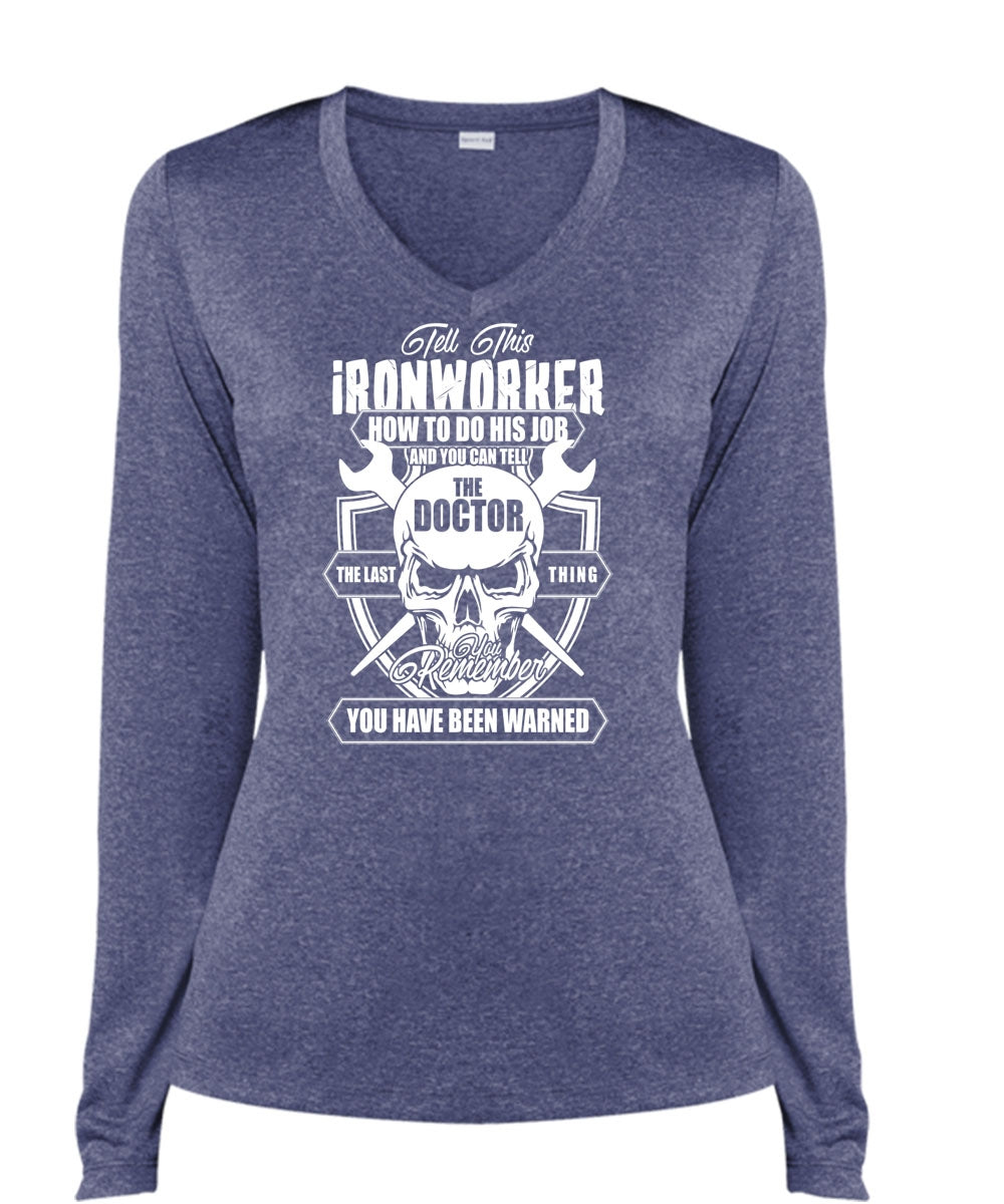 Tell This Ironworker T Shirt, You Can Tell The Doctor T Shirt, Cool Shirt (Ladies LS Heather V-Neck)