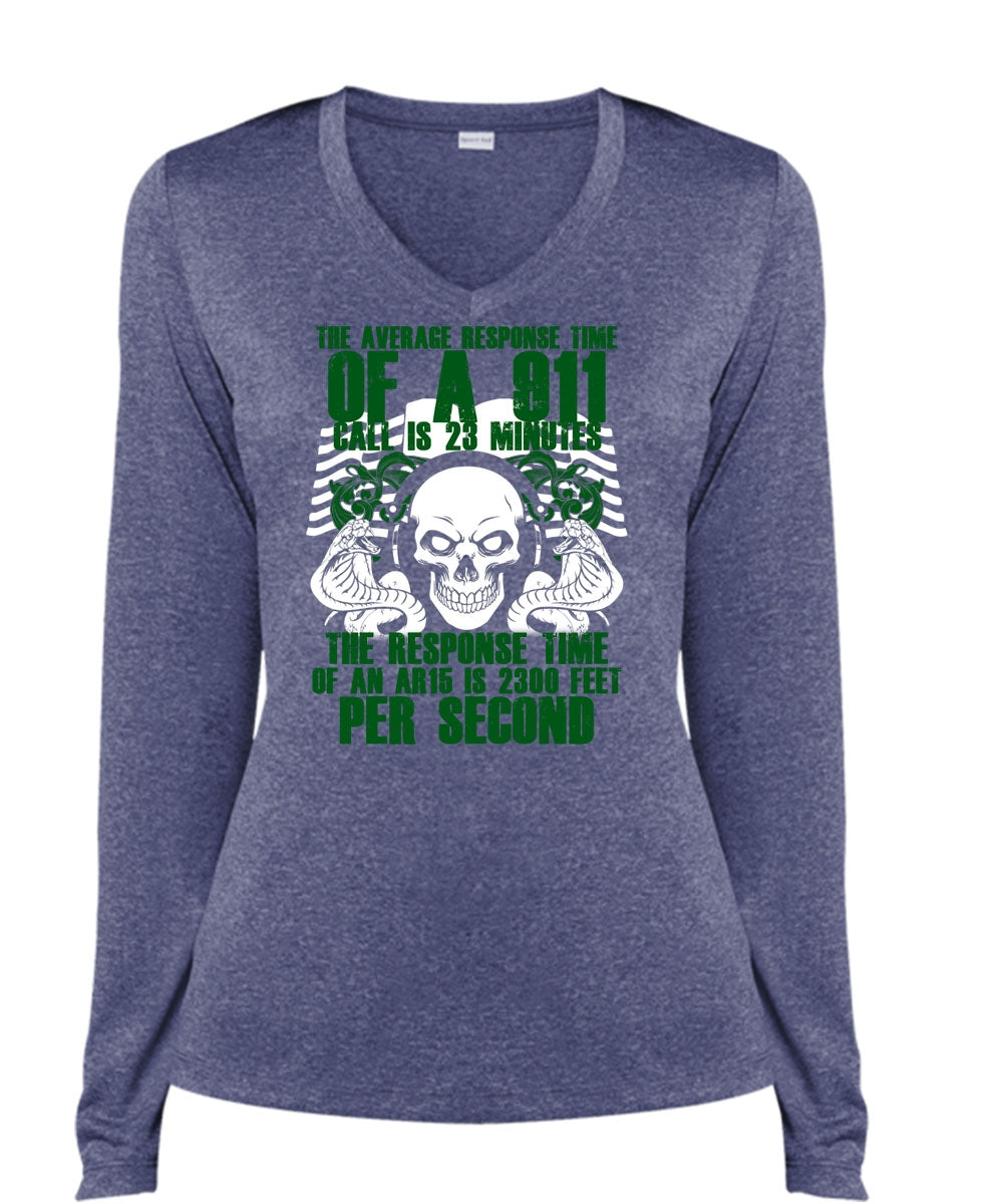 The Average Response Time Of A 911 T Shirt, Being A Dispatcher T Shirt, Cool Shirt (Ladies LS Heather V-Neck)
