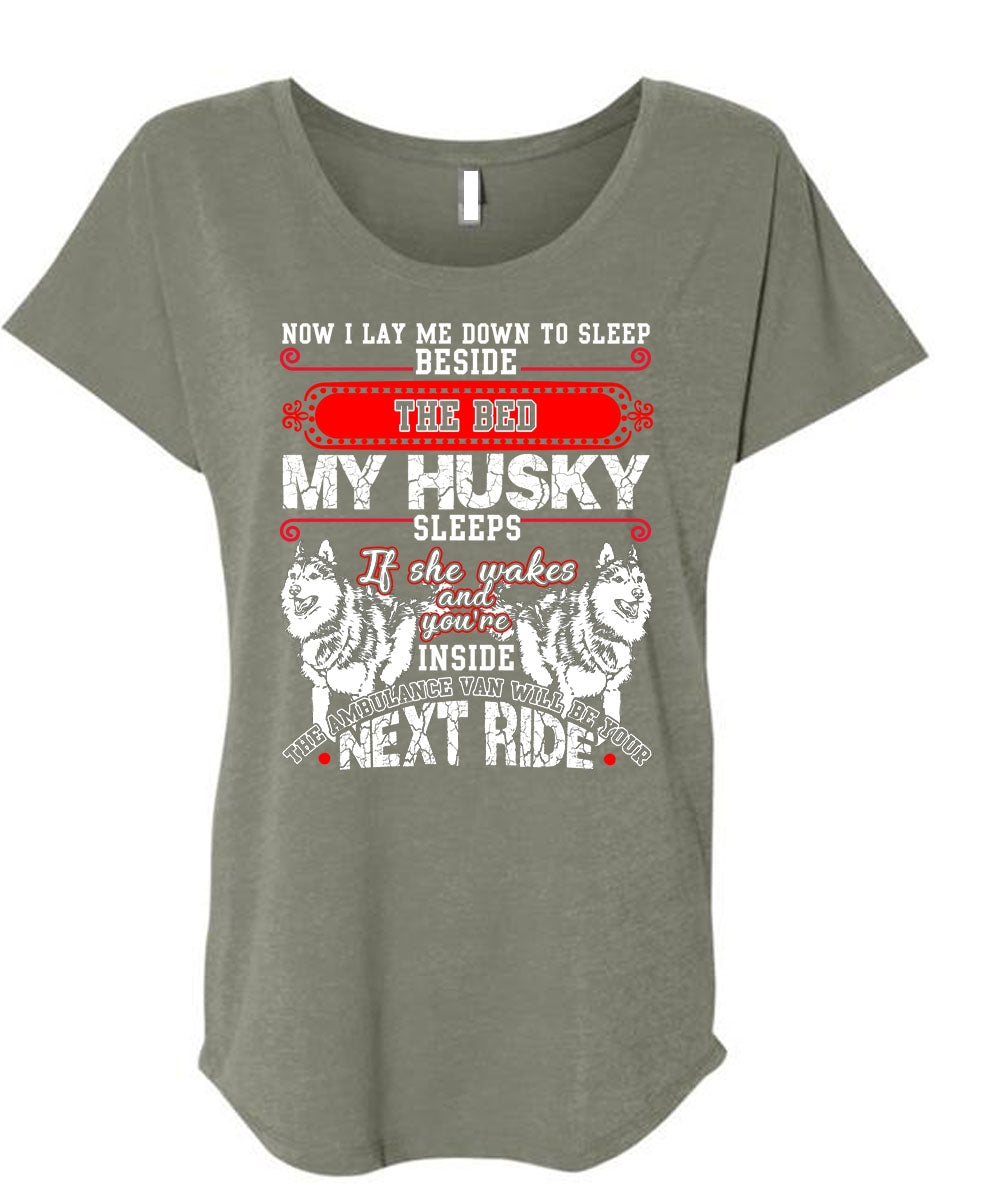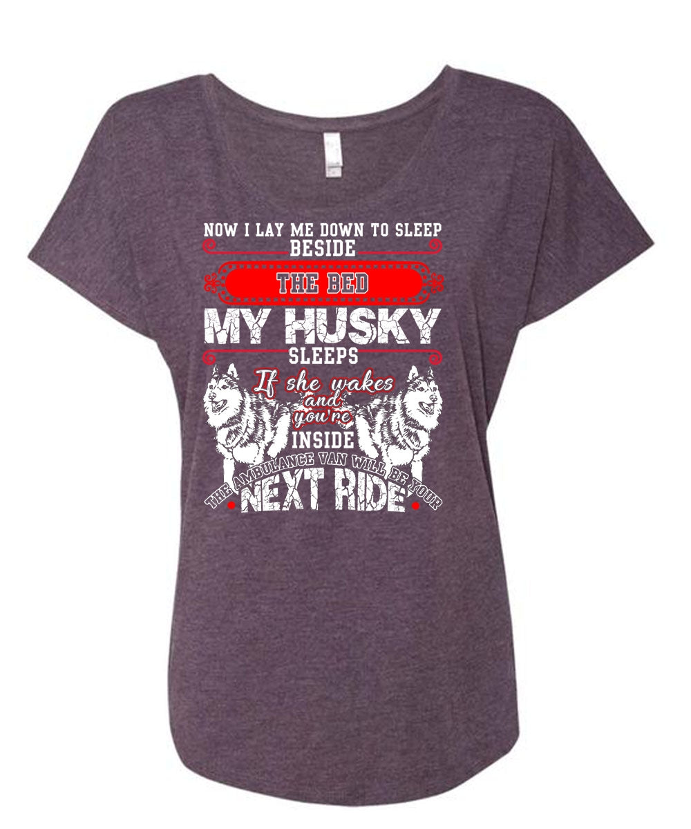 The Bed My Husky T Shirt, I Lay Me Down To Sleep T Shirt, Cool Shirt (Ladies' Triblend Dolman Sleeve)