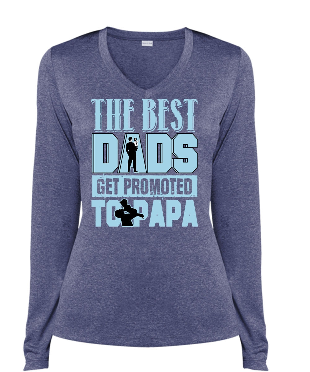 The Best Dads Get Promoted To Papa T Shirt, Being A Papa T Shirt, Cool Shirt (Ladies LS Heather V-Neck)