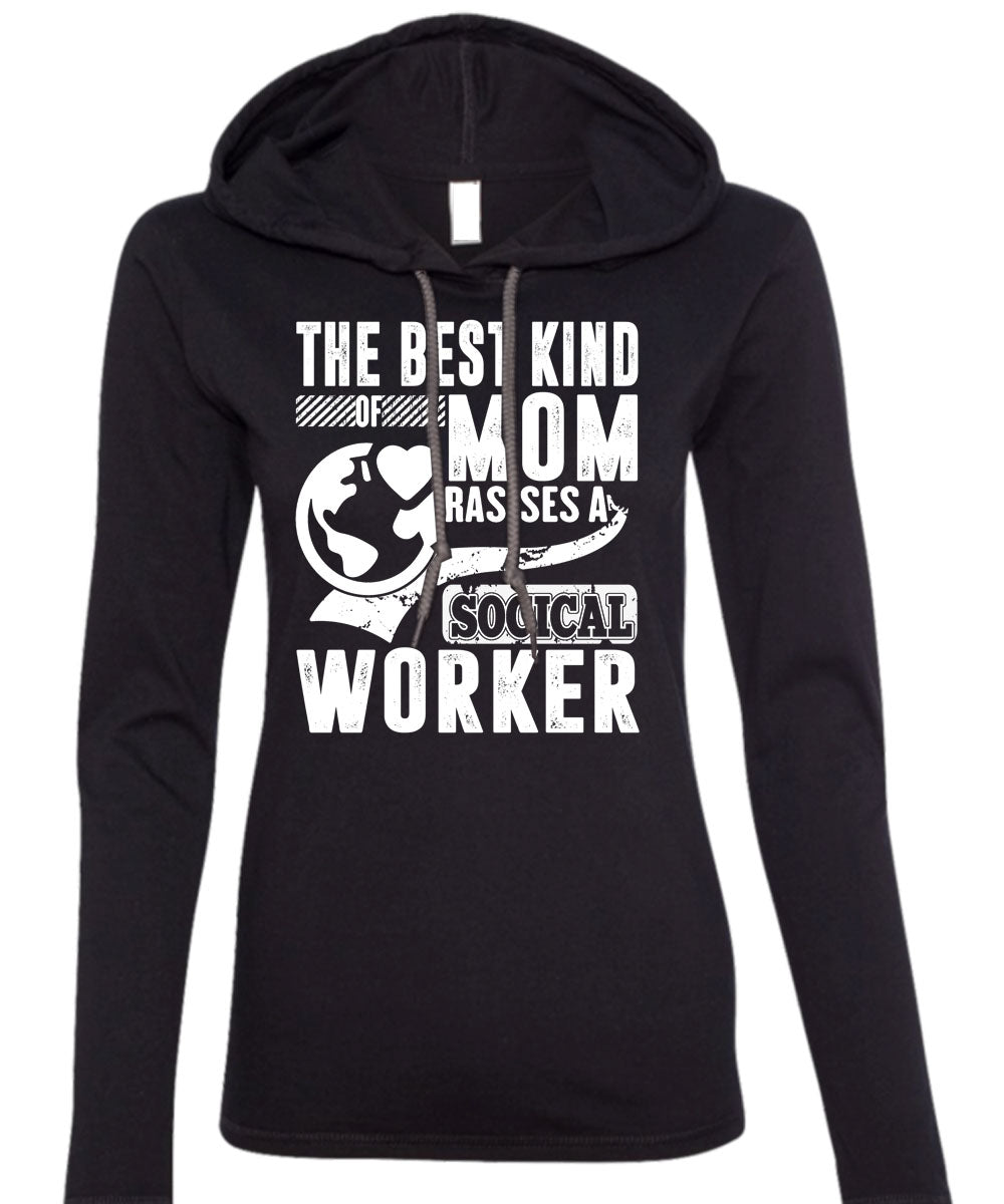 The Best Kind Mom Raises A Social Worker T Shirt, Being A Mom T Shirt (Anvil Ladies Ringspun Hooded)